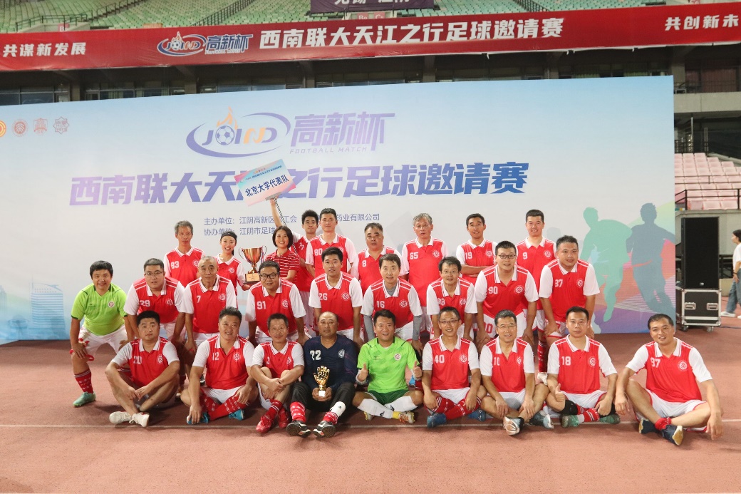 2023年8月20日,为期两日的“高新杯”西南联大天江之行足球邀请赛在江苏省江阴市体育中心体育场落幕。来自北京大学、清华大学、南开大学三校与江阴市高新区四支队伍的126名运动员在绿茵赛场展开激烈角逐,最终北大代表队取得冠军。