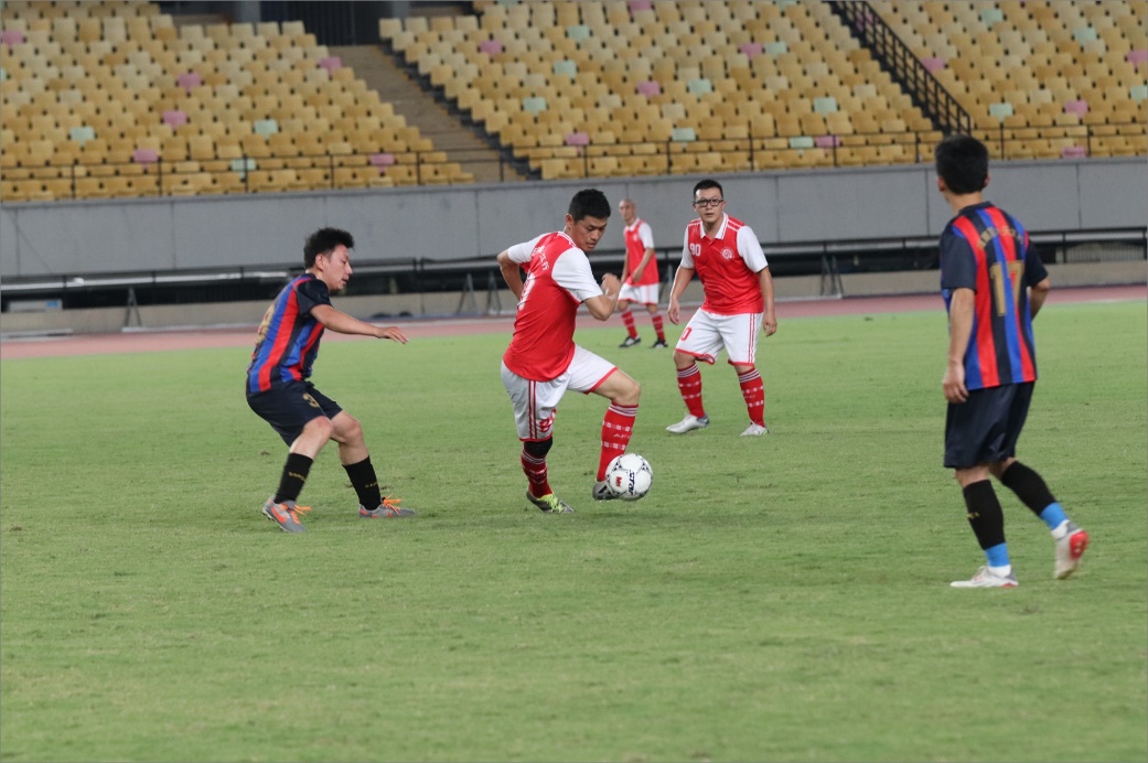 首场比赛由北大队对阵清华队。上半场,北大队凭借邢衍安老师的一粒进球暂时领先,但下半场比赛临近尾声,清华队将比分扳平,比赛进入点球大战。最终北大队顽强地以4:2的比分取得点球大战胜利,与高新区代表队会师决赛。