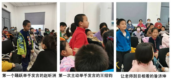 课程的最后,茜茜老师安排学员进行总结发言,锻炼小朋友的表达。赵昕洲第一个举手,特别积极踊跃!王绍钧也战胜自己,第一次举起了小手!一年级的昝济坤,总结得既有课堂收获,还有自己的感受,老师用“苟日新,日日新,又日新”!给予了高度赞扬!对于几位三、四年级的学员和朗诵团的老学员,老师不仅要求积极表达、示范朗诵,还对总结发言的时长、内容和词汇都提出了更高更具体的要求,相信大家在这样的课堂上都能收获满满、有所裨益。