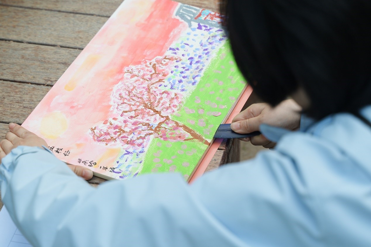 在写生前,贾老师首先向小朋友们介绍了画春色的技巧。她强调,大家首先要仔细观察春天的色彩和形态。在颜色上,春天的色彩丰富多样,从嫩绿到深绿,从粉红到淡紫,都是春天的颜色;在形态上,春天的植物和动物都有着独特的生长和活动状态,要用心观察,才能画出生动的春天。同时要求小朋友要深入思考立意和构图,注意画面中整体和特写的合理安排,对整体花丛和一枝一花运用不同的画法,为画面增添层次感和立体感。