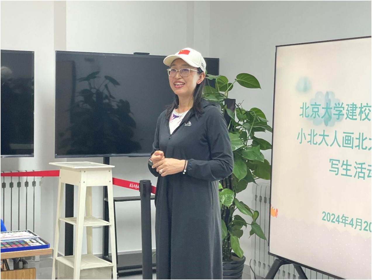雏鹰社理事长田越老师在致辞中介绍了活动的背景和意义,希望借此活动打开小朋友们通往绘画的大门,鼓励小北大人们在燕园最绚烂的季节里,细心观察,用心体会,用画笔勾勒出美丽的北大校园风光,期待有优秀的作品在校庆或儿童节期间开办画展。