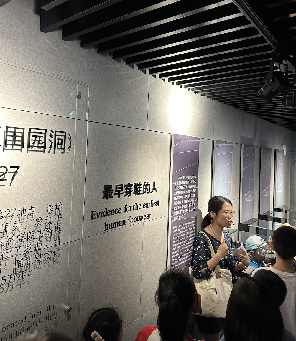 活动由考古文博学院施文博老师策划,冯玥老师全程讲解。在去遗址前,大家先来到博物馆,穿越七十万年,了解“我”从哪里来。