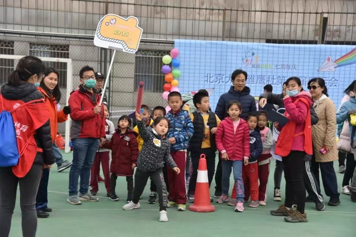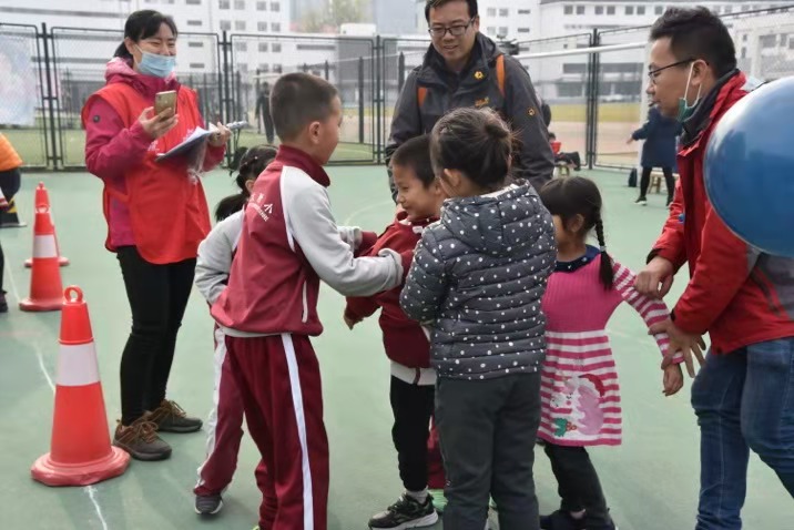 这场有趣的活动叫做“乐运会”,就是说很重要的一点就是场面很“欢乐”,我们很“快乐”。除了个人和团体赛,还有很多有趣的活动,比如愤怒的小鸟,就是小朋友们弹小鸟玩具,爸爸妈妈们接,需要我们的力度掌握合适和爸爸妈妈配合,有的时候弹出的小鸟飞得很高,爸爸妈妈们就要跑前跑后使劲去接。我们组聂万和小朋友的爸爸接中了三个高难度不同类型的发球,真是太厉害了!