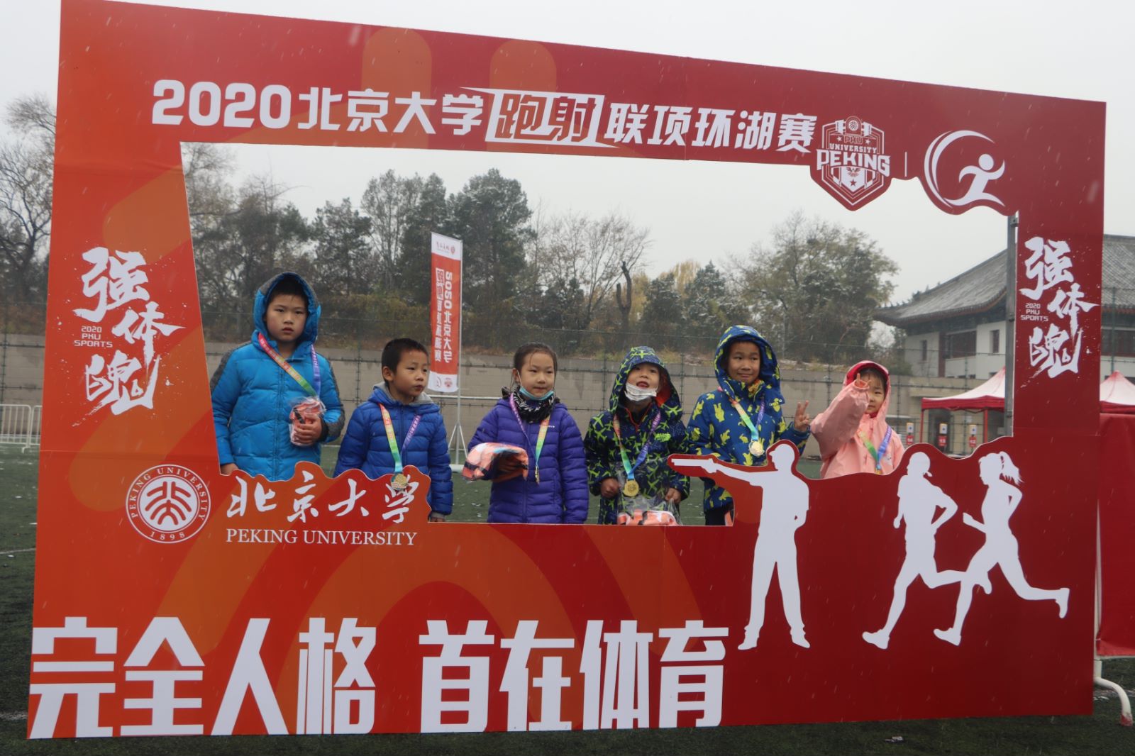 11月20日,2020年北京冬天的第一场雪翩然而至,首届“强体魄”北京大学跑射联项目环湖赛在博雅塔下鸣枪举行。来自北京大学各院系和组织的60支代表队,共300名选手在纷飞的雪花中接力完成跑步和射击任务。