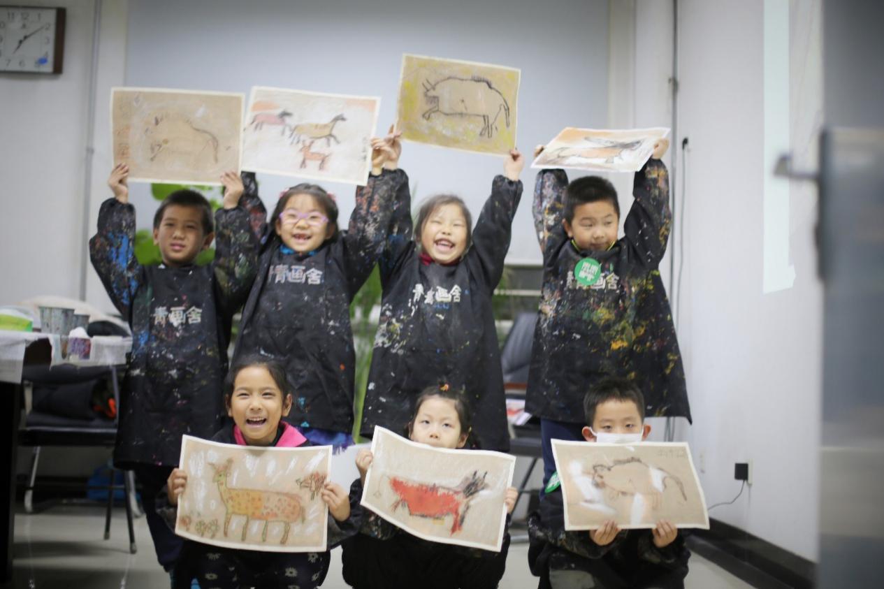 这一个个笑颜如花就知道大家都乐在其中了,通过这次课孩子们不仅对流传至今的远古艺术有了更感性的认识,同时老师的启发、同龄人的交流还让许多孩子对人类进化史和艺术发源萌发了浓厚的学习兴趣,真是收获满满。