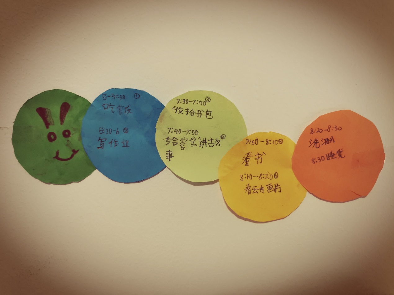我回家后立即和女儿做了从放学回家到睡觉的日常惯例表。爸爸还用小度音箱设置提醒。我克制住自己不干涉孩子的时间安排。然后惊喜地发现女儿乐意执行自己安排的日常惯例表,不仅不用我们催促,还给自己安排了给弟弟讲故事的有爱时间。日常惯例表的作用立竿见影,特别感谢杨老师的分享!