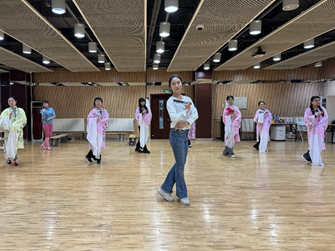 一步三回头的几句唱腔、几个简单动作和圆场将杜丽娘游园结束后,在小春香的多次提醒下不得不离开时的流连忘返展现得淋漓尽致。潘老师还对大家此前学过的身段内容进予以“细抠”,比如台步如何起步和收步、腰身在动作中的运用、不同动作中的扇子拿法以及杜丽娘和春香的互动、走位等等。本学期学员们将在潘老师的指导下把《游园》一折的唱念表演反复锤炼,深度体验《牡丹亭》之雅与昆曲之美。协会计划在传习班结课后组织汇报表演,相信大家在认真学习与刻苦训练后都能够呈现出良好的学习效果。