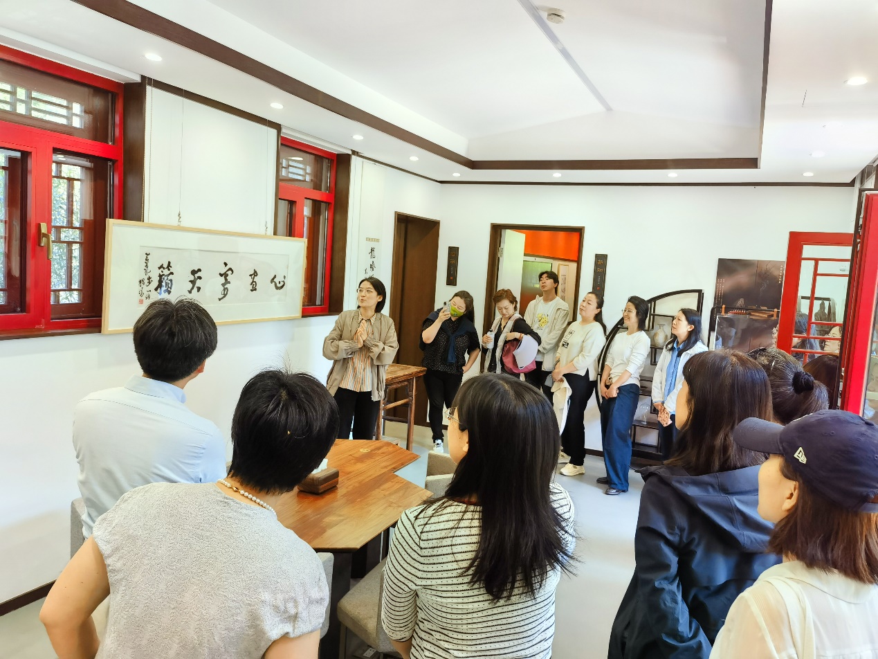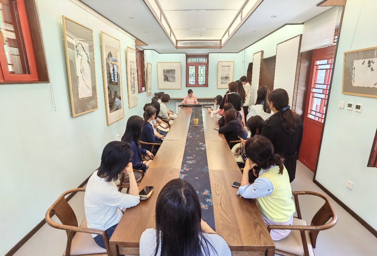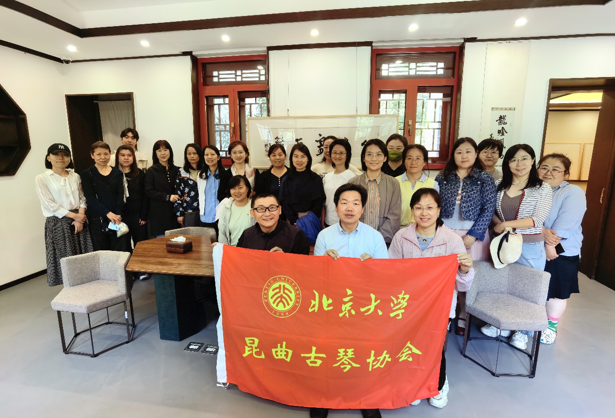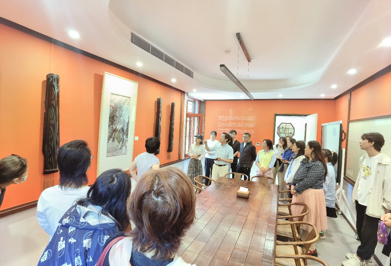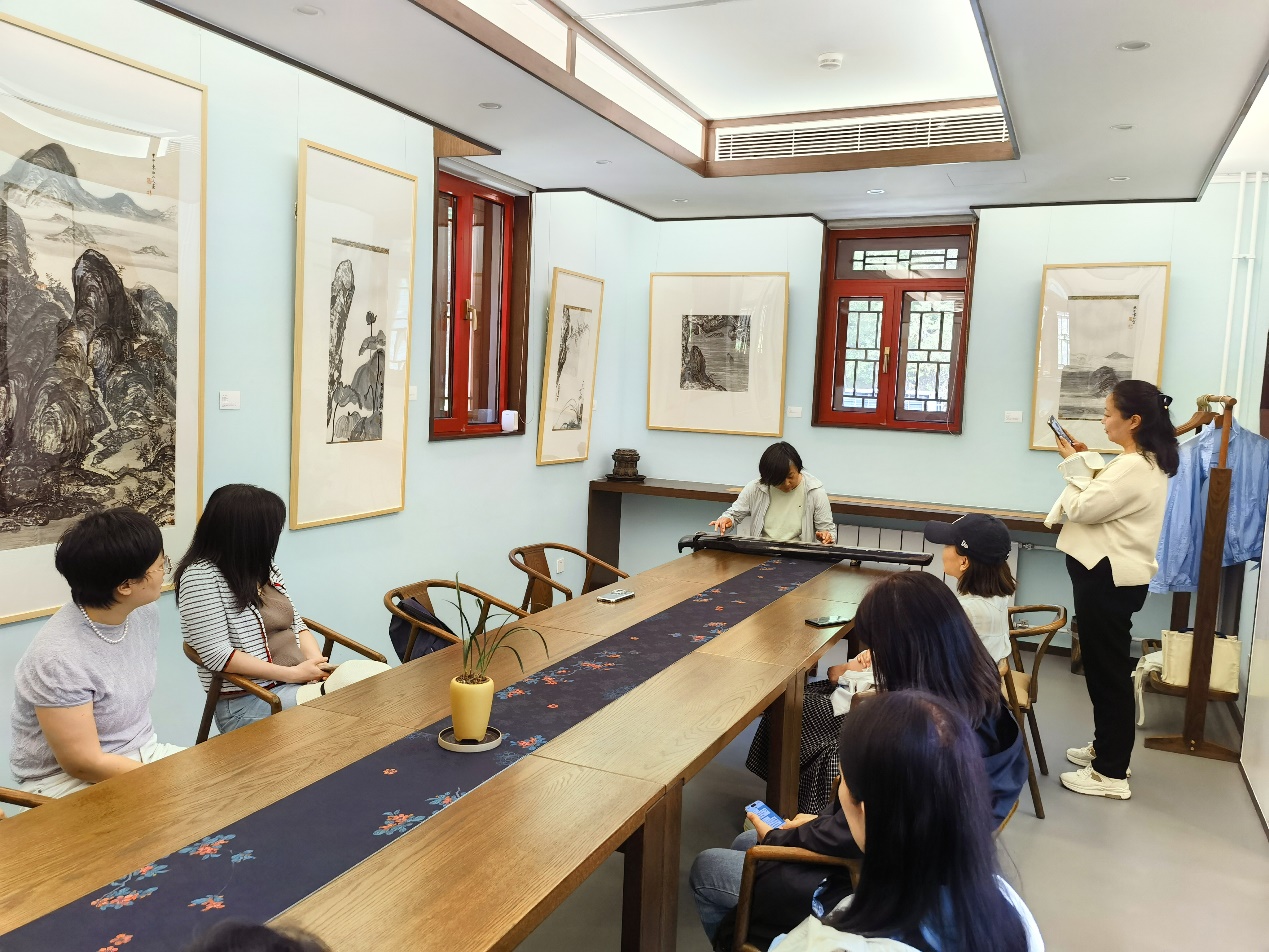2025年5月14日中午,昆曲古琴协会二十余位会员集体参观了由北京大学昆曲传承与研究中心、北京大学会议中心联合主办的《金蔚书画古琴展》。作为"金声玉振·燕园风物"系列活动的压轴展览,本次展览在环境雅致的燕南园五十号展出了古琴家金蔚先生创作的20余件书画小品、亲手斫制的"千金材"系列古琴,以及珍藏的清代仿唐金银平文琴,吸引了众多师生驻足。策展人艺术学院陈均老师、会议中心曹允馨老师为大家讲解导览。
