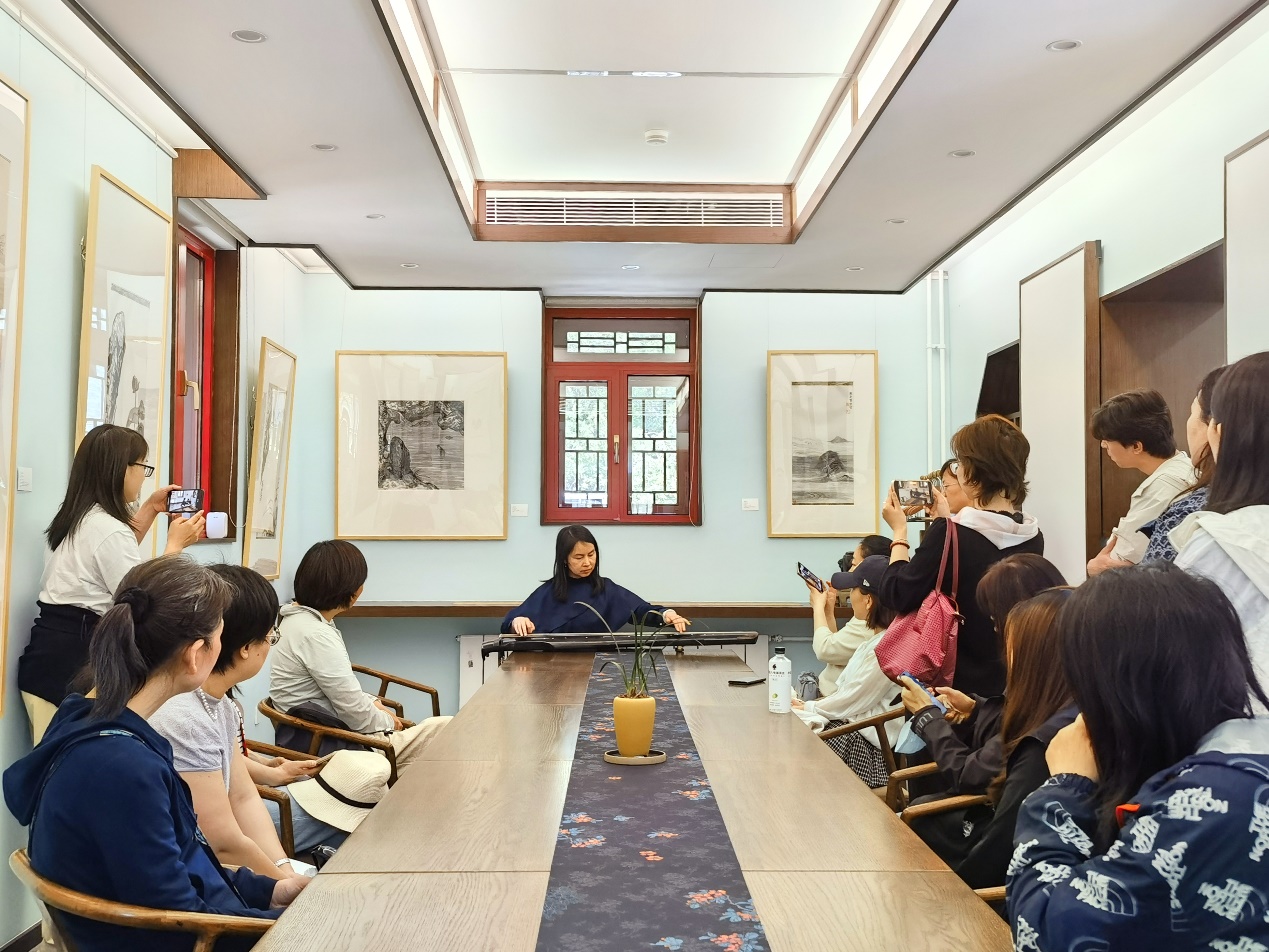 观展活动结束后,杨芬、赵敏等几位老师还为大家带来了《酒狂》《良宵引》等传统经典琴曲,这场即兴开展的古琴雅集别具韵味,会员们鉴赏琴器赏、演绎琴曲、深度交流习琴心得,不仅实践着"左琴右书"的文人生活美学,也延续着北大百年来的琴学传统。