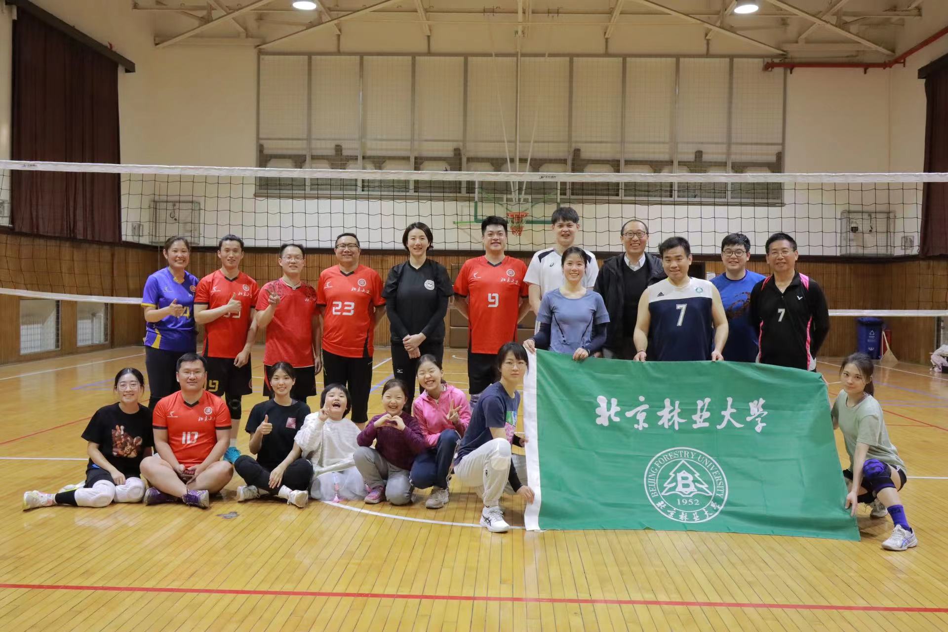 2023年3月18日,15:00-18:00,应北京大学教职工排球协会之邀,北京林业大学教职工排球队与北大教职工排球队在我校第一体育馆举行了一场友谊交流赛。比赛规定双方每局比赛场上至少要有两名女队员,其它规则与正式比赛规则一致。