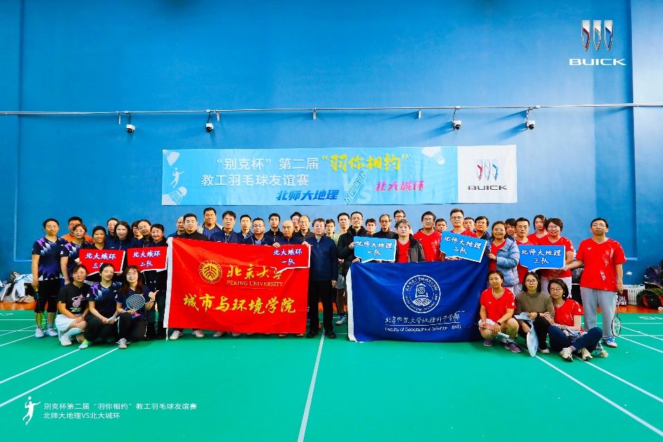 羽球飞扬,情谊激荡。2025年11月22日下午,第二届"羽你相约"教职工羽毛球友谊赛在伯明顿羽毛球馆成功举办。本项赛事由北京大学城市与环境学院和北京师范大学地理科学学部于2024年联合发起,首届赛事由北大城环学院承办,在燕园顺利开展。本届赛事则由北师大地理学部承办,共吸引双方40余名教职工踊跃参赛。比赛旨在丰富教职工文体生活,通过体育运动增进双方友谊,促进两校地理相关学科教师间的交流合作,营造积极向上的地理学科体育文化氛围。