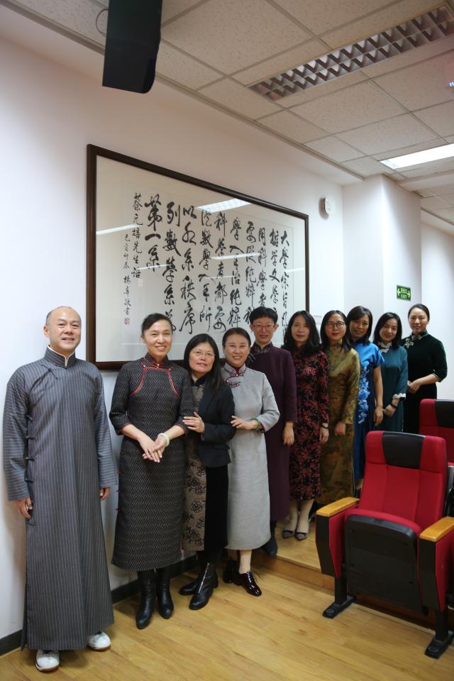 讲座后,10余名老师现场试穿了由徐冬老师灵犀坊团队准备的样式精美、做工精良的旗袍、长衫,亲身体验中式服装的意蕴和美感。徐老师对老师们试穿的服装一一进行讲解,专业摄影师为老师们留下了美好瞬间。