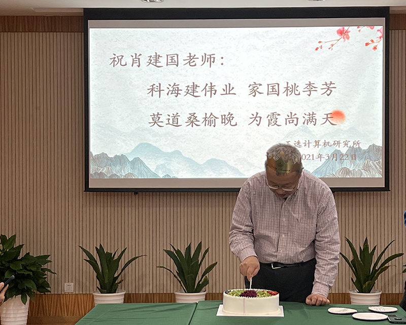 2022年3月22日,王选所工会在106报告厅为肖建国老师举办了主题为“科海建伟业,家国桃李芳”的荣休茶话会。王选所领导班子成员及部分教职工代表欢聚一堂,分享了与肖老师一起工作学习的珍贵回忆。