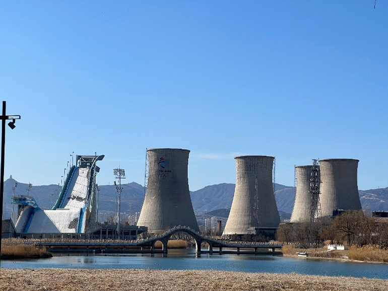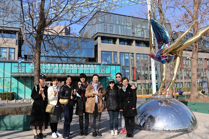 进园后,大家迫不及待冲向滑雪大跳台作为参观的第一站,大跳台与冷却塔、群明湖、远处西山的天际线相映成辉。大跳台上的积雪还未融去,冷却塔上冬奥标志依然艳丽,身临其境,大跳台自由式滑雪冠军谷爱玲在大跳台上腾空、飞翔历历在目,她的热爱与坚持、勇于挑战的精神体现了当代女性的魅力与风采。