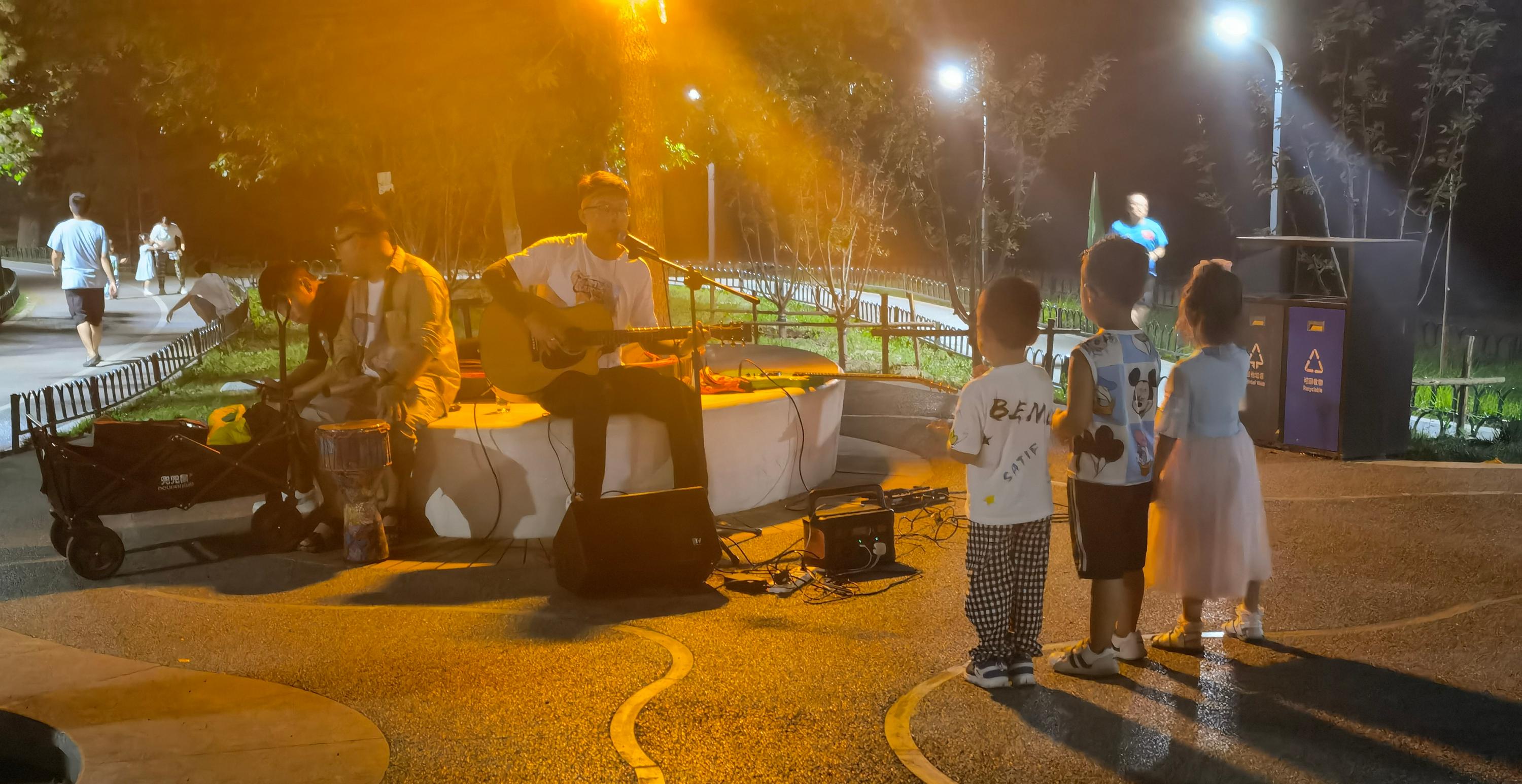 在沉闷的疫情封控期间,公园散步时偶遇这支路边乐队,