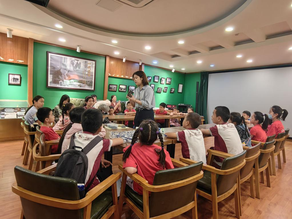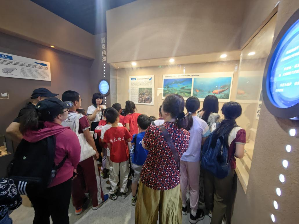 接下来,小朋友们在讲解员的带领下饶有兴致的参观科普展览。大家不时在标本前驻足观察,结合展览文字和讲解内容,多维度走近远古生态,了解生命进化和人类起源。
