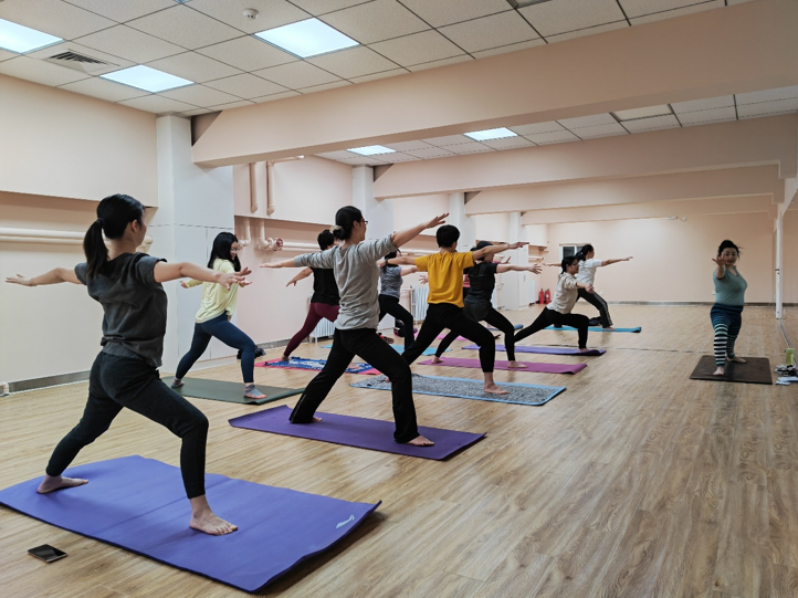 为构建和谐外国语学院、缓解教职工长时间案牍工作的疲劳状态,2022年春,外国语学院工会聘请专业瑜伽教练带领老师们进行每周一次锻炼。在瑜伽老师的指导下,通过运动身体、调控呼吸,控制心情,以保持健康的身体,获得身心愉悦轻松的状态。