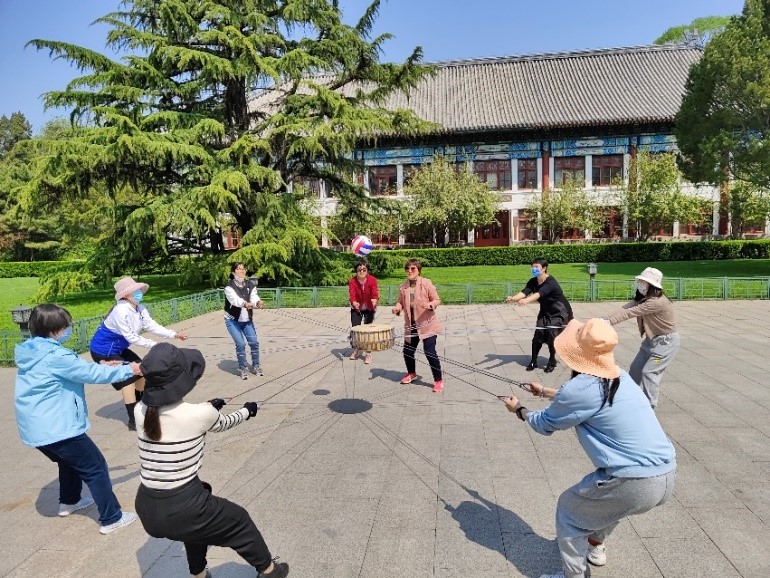 草长莺飞,晴空万里,为迎接北京大学2022年运动会,自4月18日起,每天上午10点半,报名运动会同心鼓项目的外院教职工们在外院工会主席、副院长张冬梅,外院工会常务副主席倪丽慧的带领下,齐聚在外文楼前花坛空地处进行同心鼓项目的集中训练。