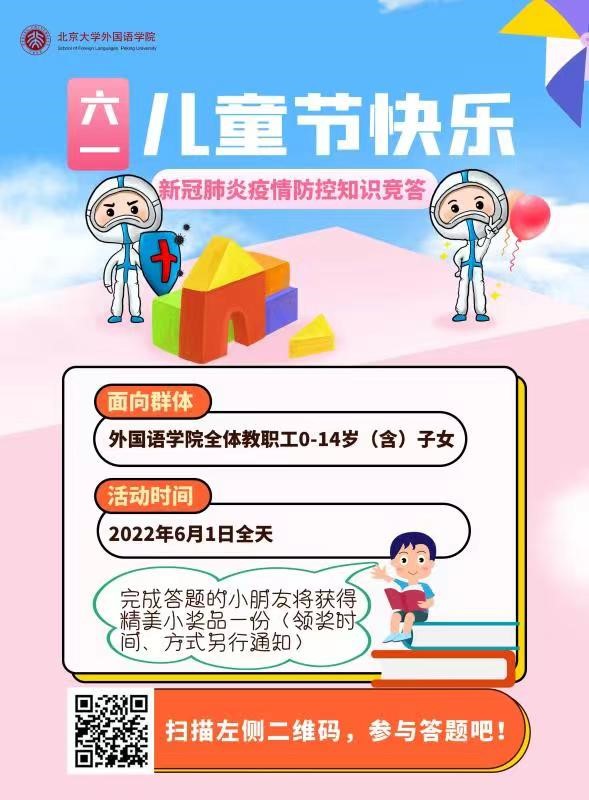 6月1日是一年一度的儿童节,因为北京市突发的新冠肺炎疫情,外国语学院工会原本计划线下举办的儿童节活动遗憾取消。在这样的特殊情况下,外国语学院工会主席、副院长张冬梅老师和常务副主席倪丽慧老师精心为外院工会教职工的子女们举办了一场新冠肺炎疫情防控知识线上竞答活动,每位完成答题的小朋友都会获得一份奖品。