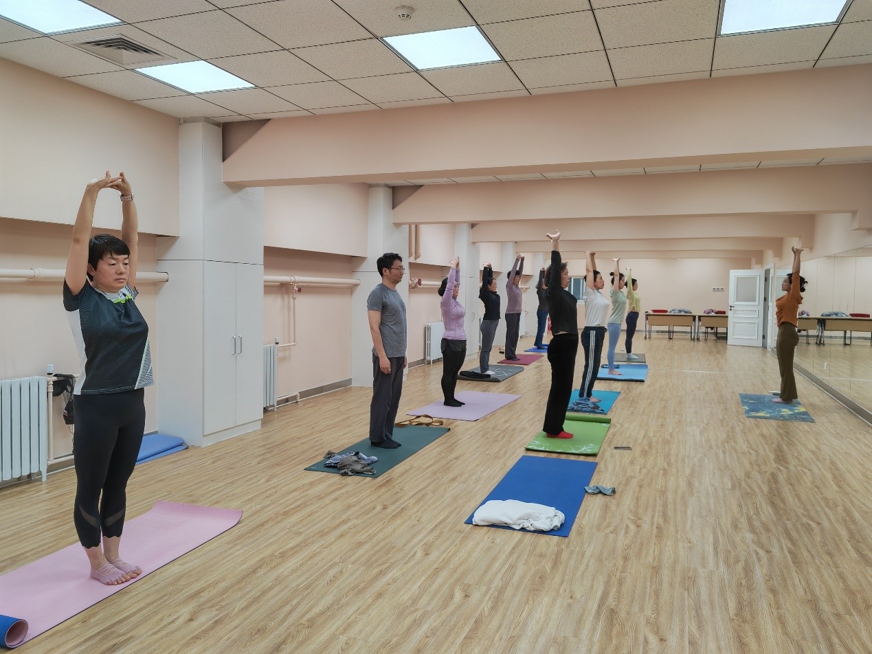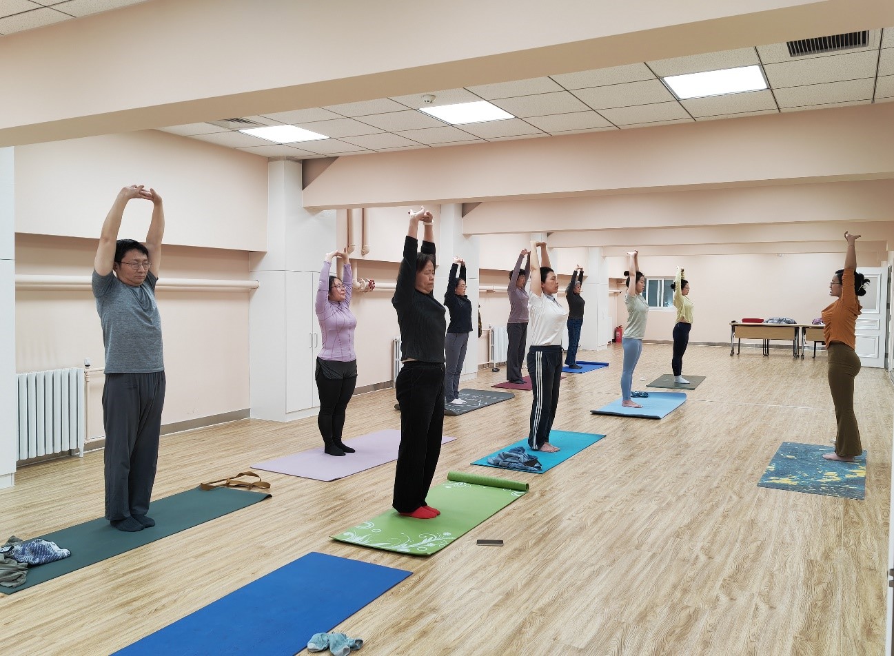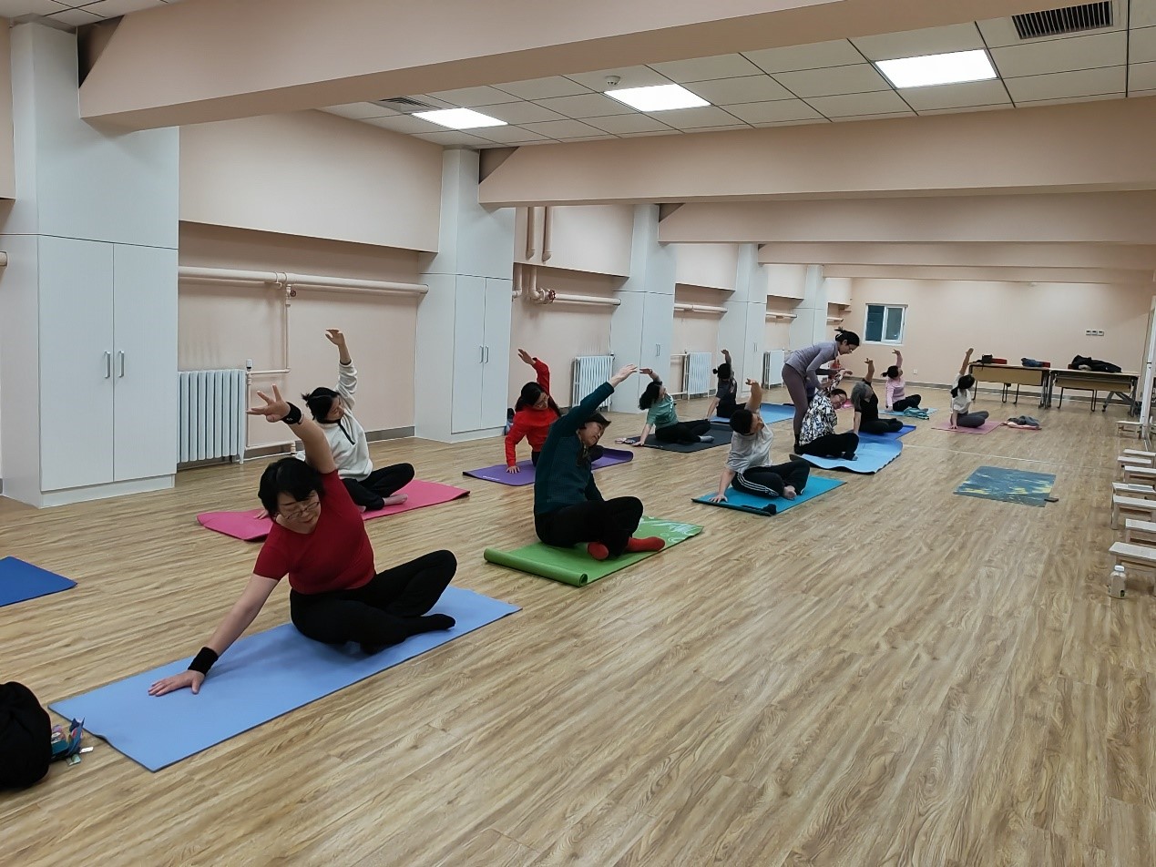 外国语学院工会领导一如既往支持学院的文体活动,为瑜伽社团活动提供全方位保障。宽敞明亮的瑜伽教室,齐全的健身设施,使得大家在舒适的环境中更好地调整身心。越锻炼越年轻!(文/图 李宁)