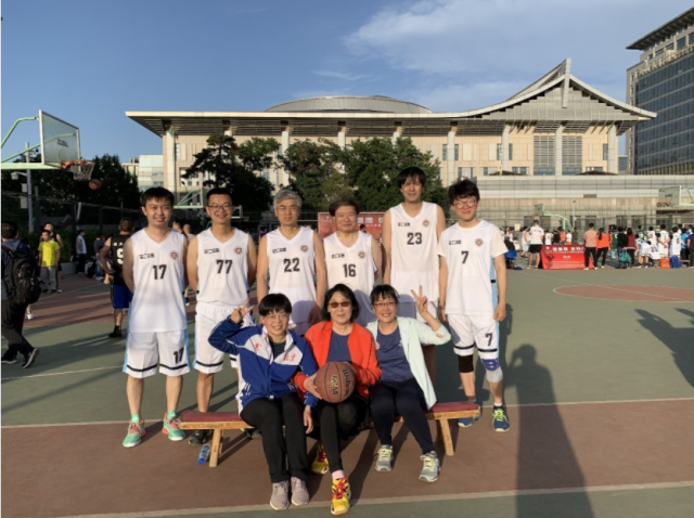 外国语学院教职工篮球队由工会主席、副院长张冬梅老师担任领队,队中既有马小兵老师(日语系)与赵白生老师(世文所)这样身经百战的老将,也有毛明超老师(德语系)、谢侃侃老师(国别区域)等已有比赛经验的队员,更有尹旭老师(俄语系)、王渊老师(西葡语系)、葛奇蹊老师(日语系)、施越老师(国别区域专业)、王乃懋老师(学工)以及金鑫老师等首次入队的新生力量。女队则在张冬梅老师之外,还包括翁家慧老师(日语系)、林琳老师(德语系)以及新加入的朱晓洁老师(法语系)。毛明超老师担纲场上队长,而工会体育委员李宁老师则负责球队的后勤保障工作。