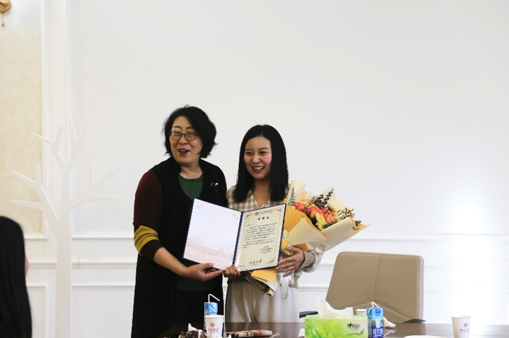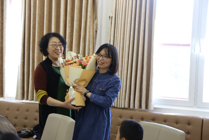 张冬梅老师首先肯定了两位老师的辛勤工作。张老师提到,两位老师在外院的工作中一直勤勤恳恳,任劳任怨,不计个人得失,从自己的岗位职责出发,在学院制度建立、工作流程优化、系所服务等方面做出了突出的贡献。张老师鼓励大家向两位老师学习这种职业精神,立足自身,继续为外院的发展添砖加瓦。之后,张老师代表学院工会向两位老师送上了鲜花及感谢信,感谢她们多年来对外院的付出,并衷心祝愿她们收获更加美好的未来。