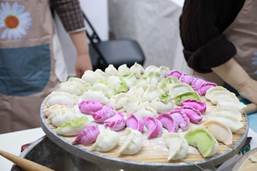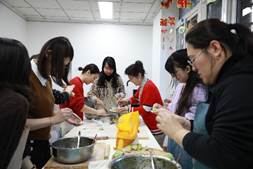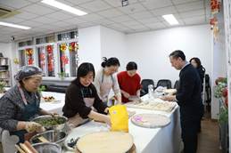 茶话会在老师们热火朝天劳动的欢声笑语中拉开帷幕,大家分工合作,你揉面来我拌馅,亲自动手包制了各具特色的各色饺子,每一个饺子都承载着大家对新年的美好祝愿。