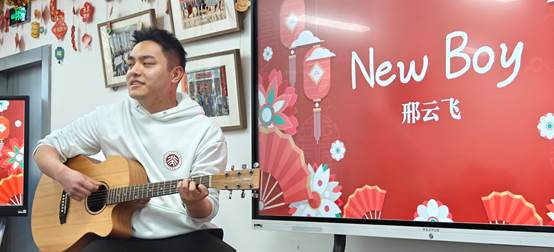 档案馆保安小哥邢云飞以一首吉他弹唱《New Boy》,优美的歌声和和吉他声回荡在活动室内,表达了对新年的美好期待。