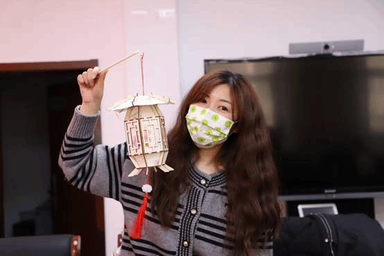 接下来,大家一边观看讲师演示制作方法,一边拆解手工材料。安装LED灯和红绳、涂胶水、搭框架、黏花草纸、固定提杆……看似简单的步骤,却需要十足的耐心和细心。在讲师的指导下,大家全神贯注、小心翼翼地拼插精美的灯体,一步步成型的灯笼给大家带来了满足感和愉悦感。漂亮的灯笼完成后,打开开关,梦幻般的灯光交相辉映,为这个冬日带来节日的温暖。