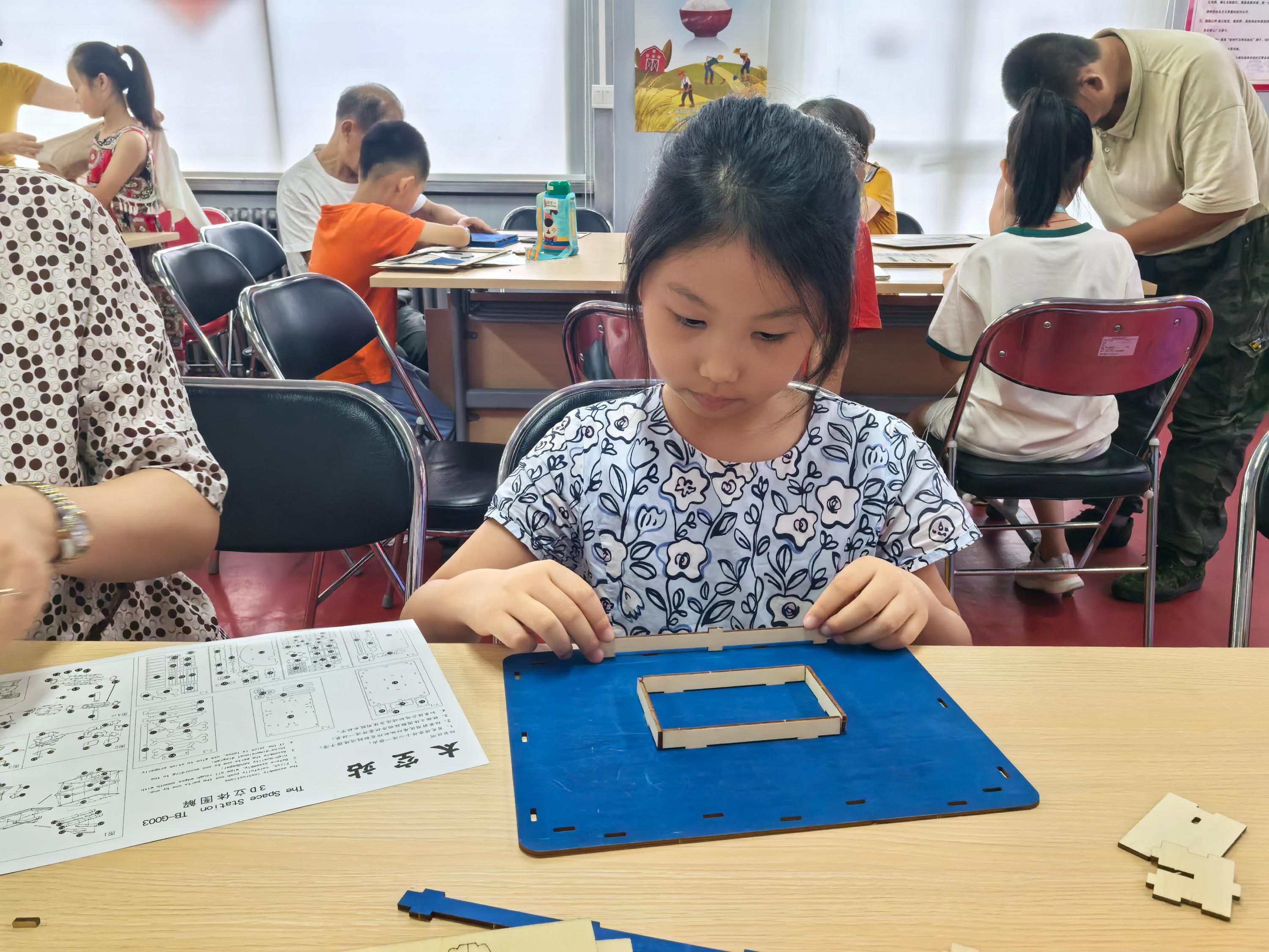 接下来,工作人员精心准备了模型套件,在父母的陪同下,孩子们开始了“空间站建造”之旅。小小空间站航模看似简单,真正制作起来,却并不是一件容易的事情。孩子们通过认真学习、耐心摸索,克服了制作过程中遇到的困难和阻碍,不仅锻炼了动手能力,培养了解决问题的能力,也学到了团队合作的重要性。通过一个个亲手搭建的太空站模型,充满奇思妙想的孩子们表达着自己的太空梦想。