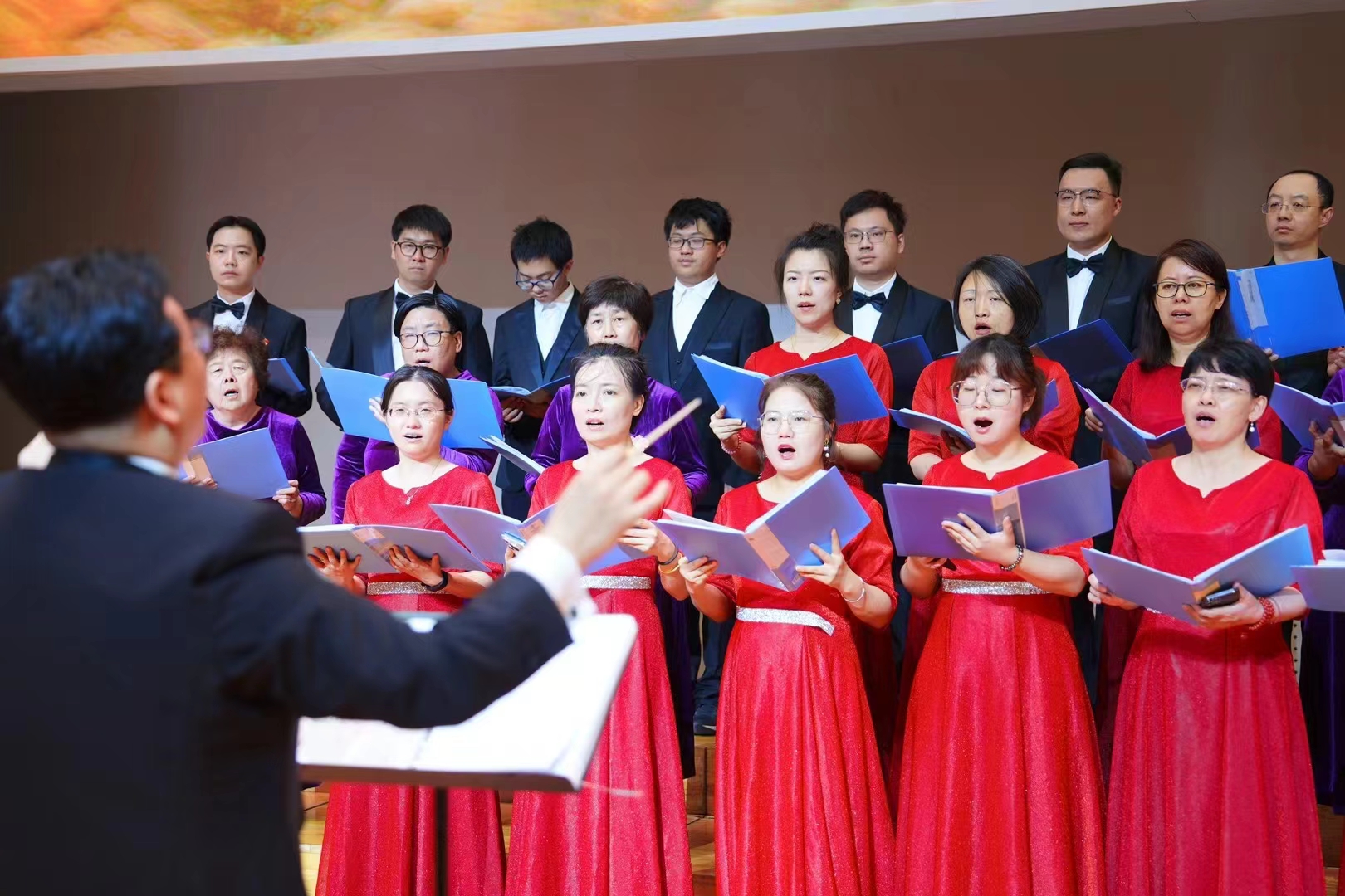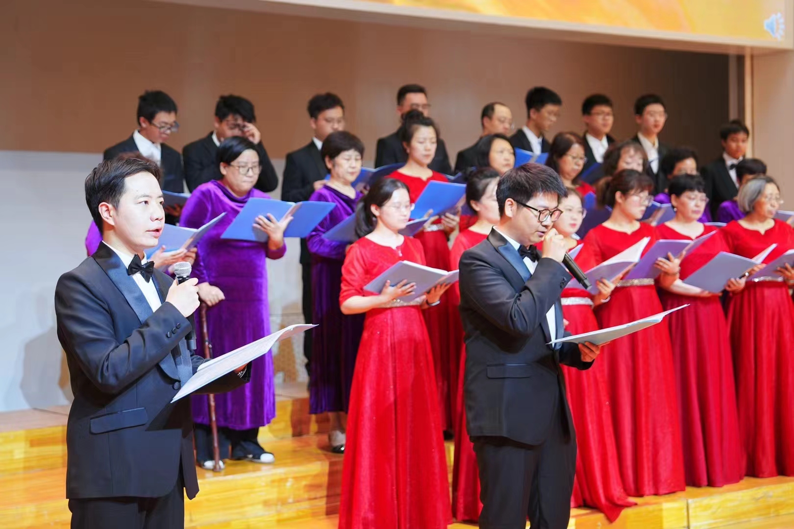 在热烈的掌声中,老师们给观众呈现了一台精彩的合唱演出,校领导同合唱团的老师们合影留念。
