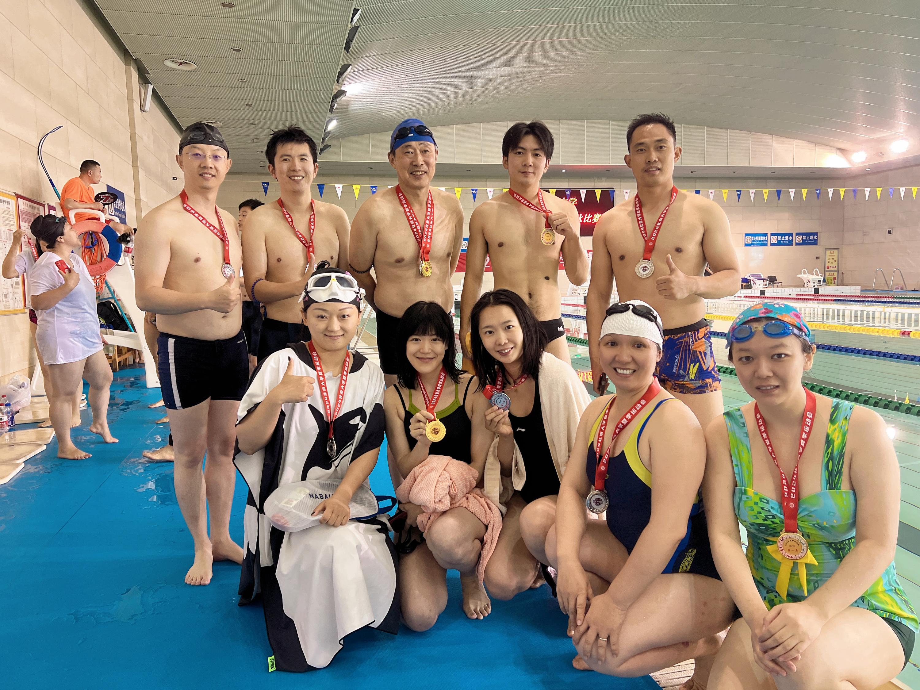 北大工会举办的游泳比赛激发了队员们的集体荣誉感,附中也通过参加大学组织的各项活动增强凝聚了、向心力,教职工在积极参加活动中增强体魄、愉悦身心和收获了真挚的友谊。