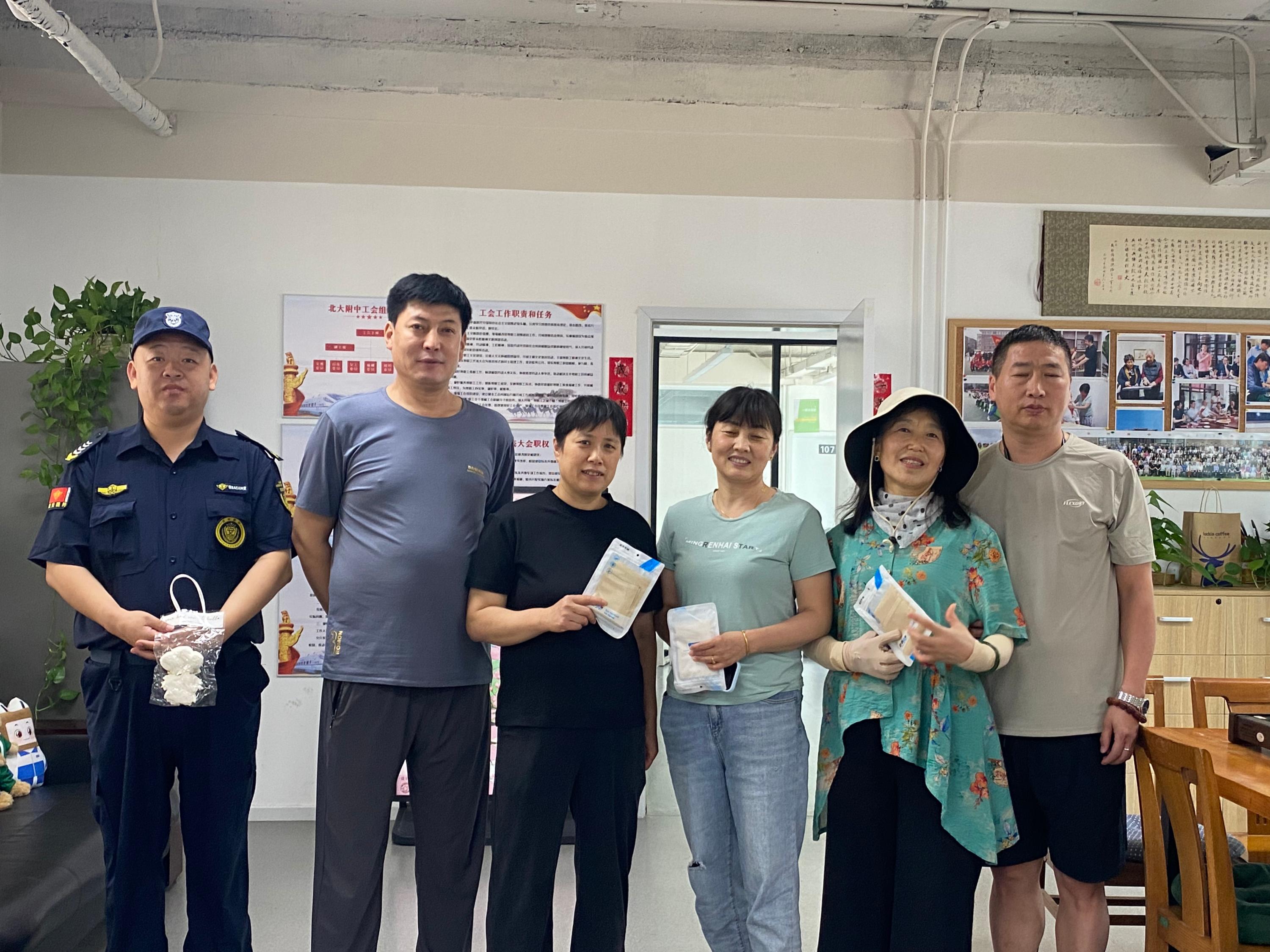 近日,持续高温天气给户外工作者带来严峻“烤”验。为表达对一线教职工的关怀,附中工组织开展“夏日送清凉”慰问活动,为坚守岗位的物业工人和体育教师送去防暑降温物品,在炎炎夏日中为他们带去一丝清凉与关爱。
