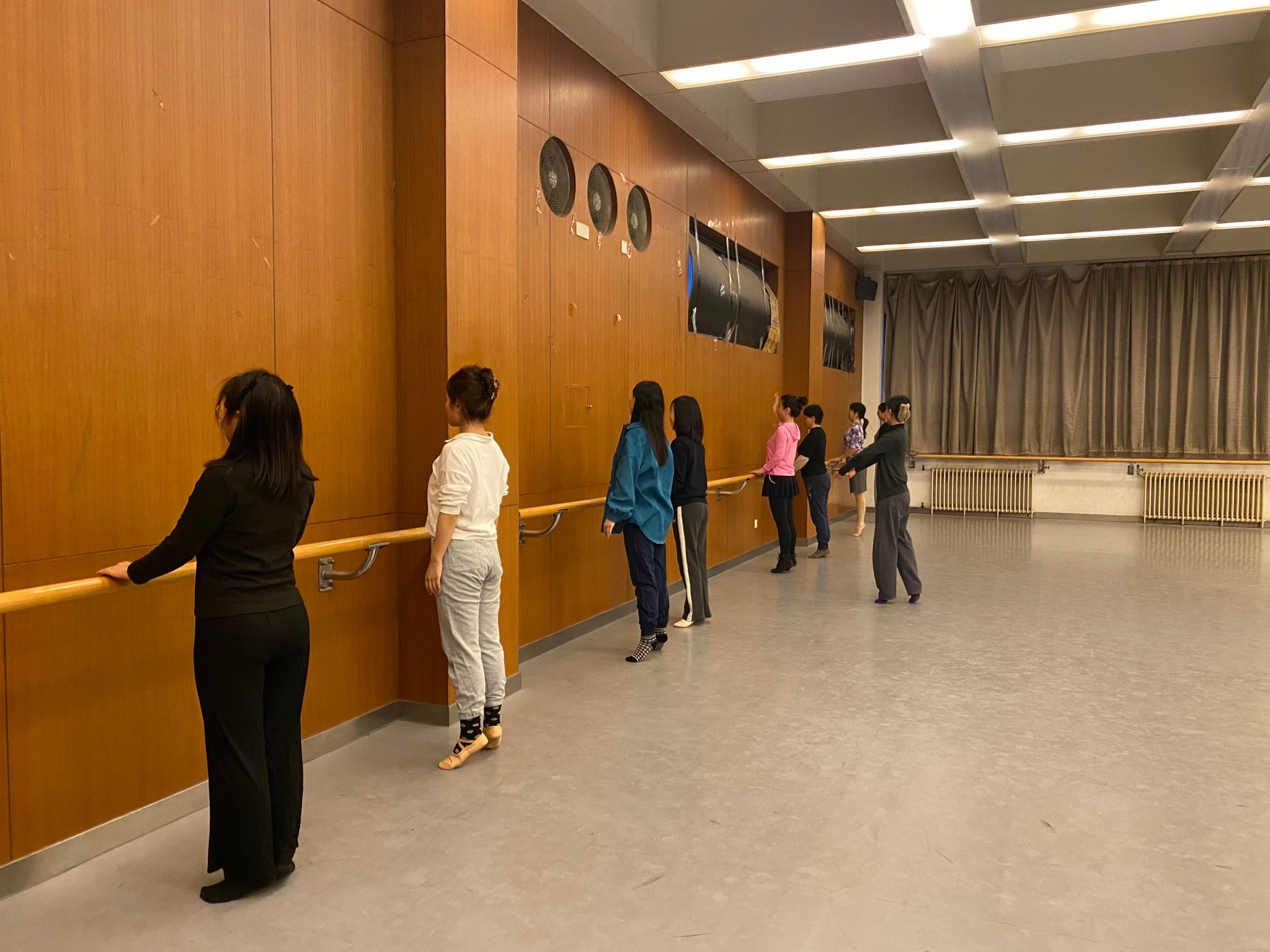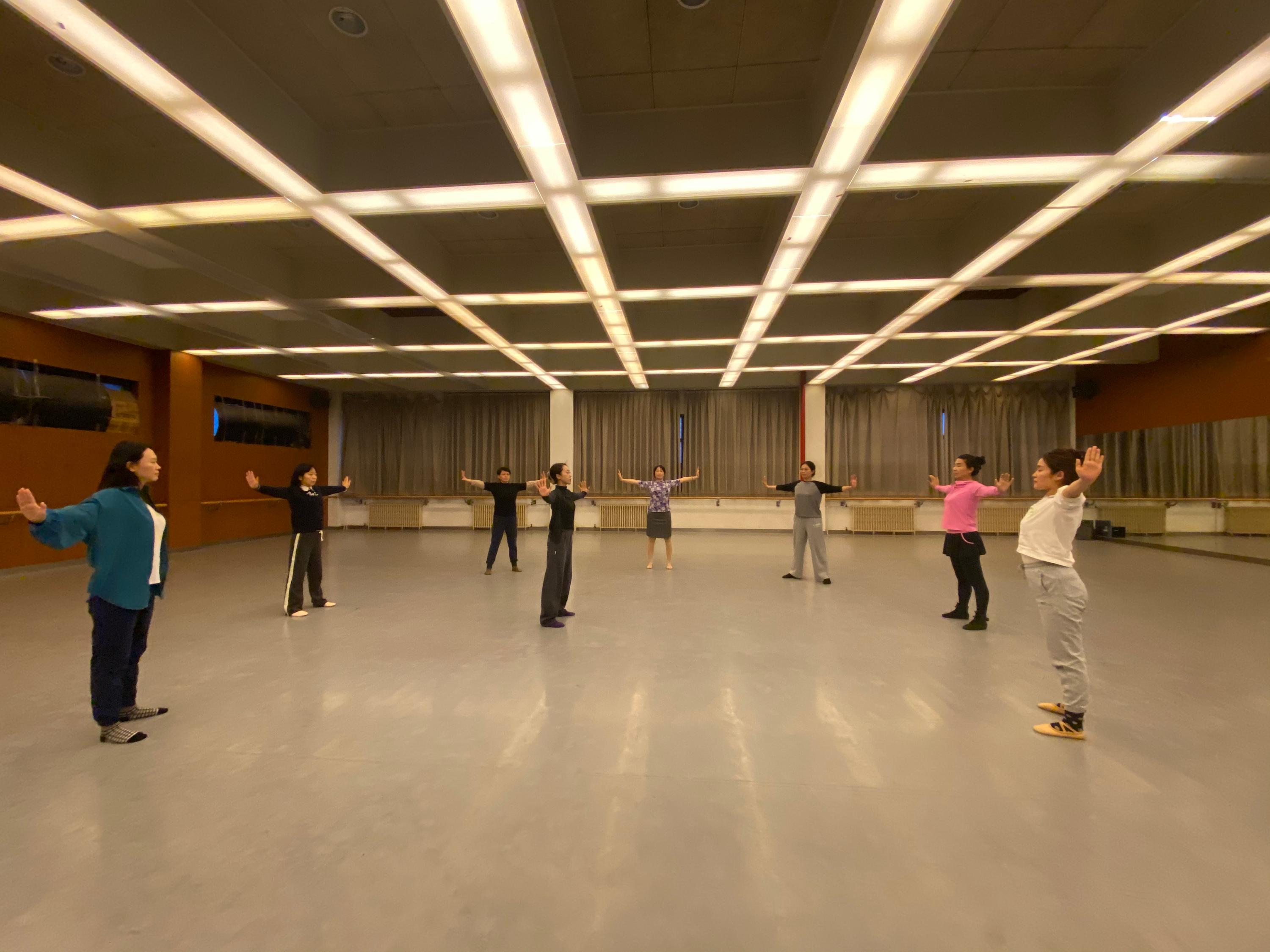 在附中五层舞蹈教室里,老师们伴随悠扬旋律翩翩起舞,她们调整姿态、练习舞步,享受着手舞足蹈的乐趣。教职工们从繁忙的三尺讲台到宽敞的舞蹈场地,她们舞动的身姿成为一道亮丽的风景线。