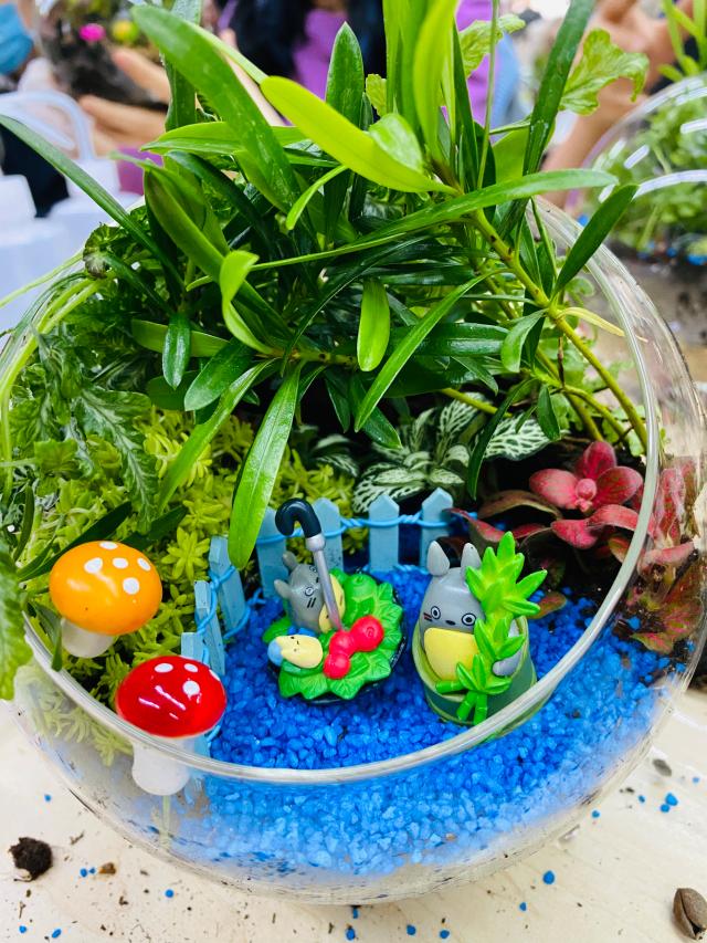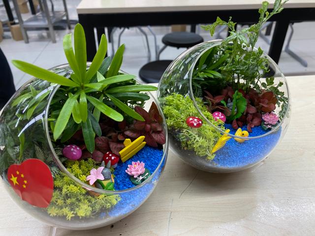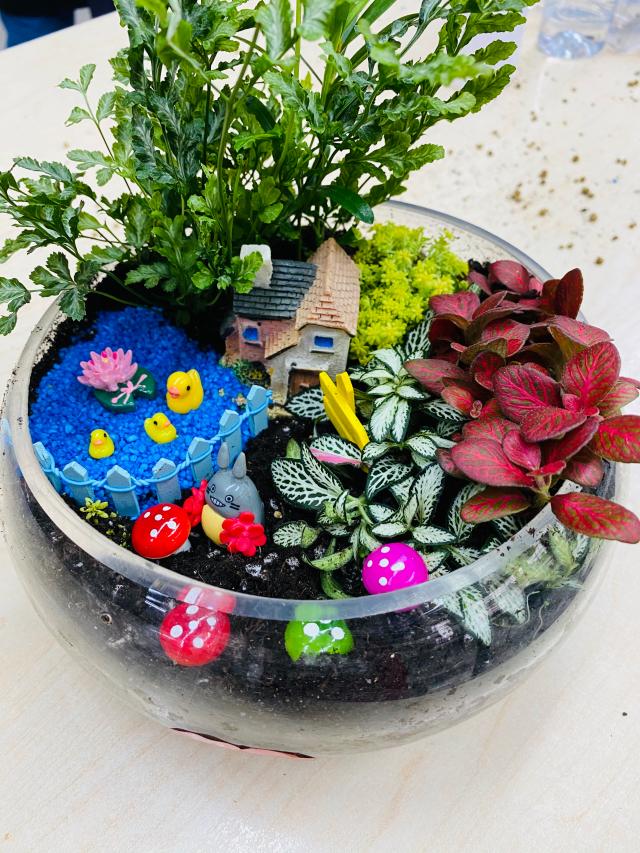 首先,说一说制作微缩景观。为方便更多的老师参与到活动中来,工会开设了两个时间段供教师选择,让在紧张教育教学工作的教职工们,放松身心,庆祝教师节!教师们在制作盆景的过程中施展了奇思妙想,做出别具一格、独居特色的盆景,盆景既装饰了办公桌,又装饰了自己的家,更装饰老师们的梦!