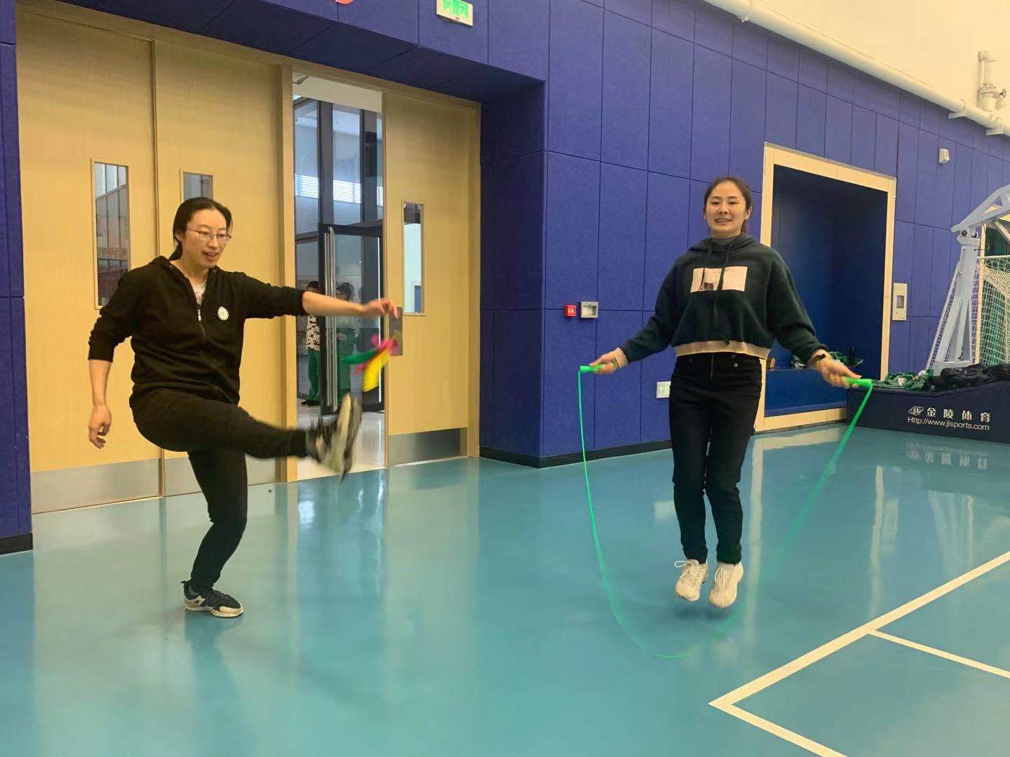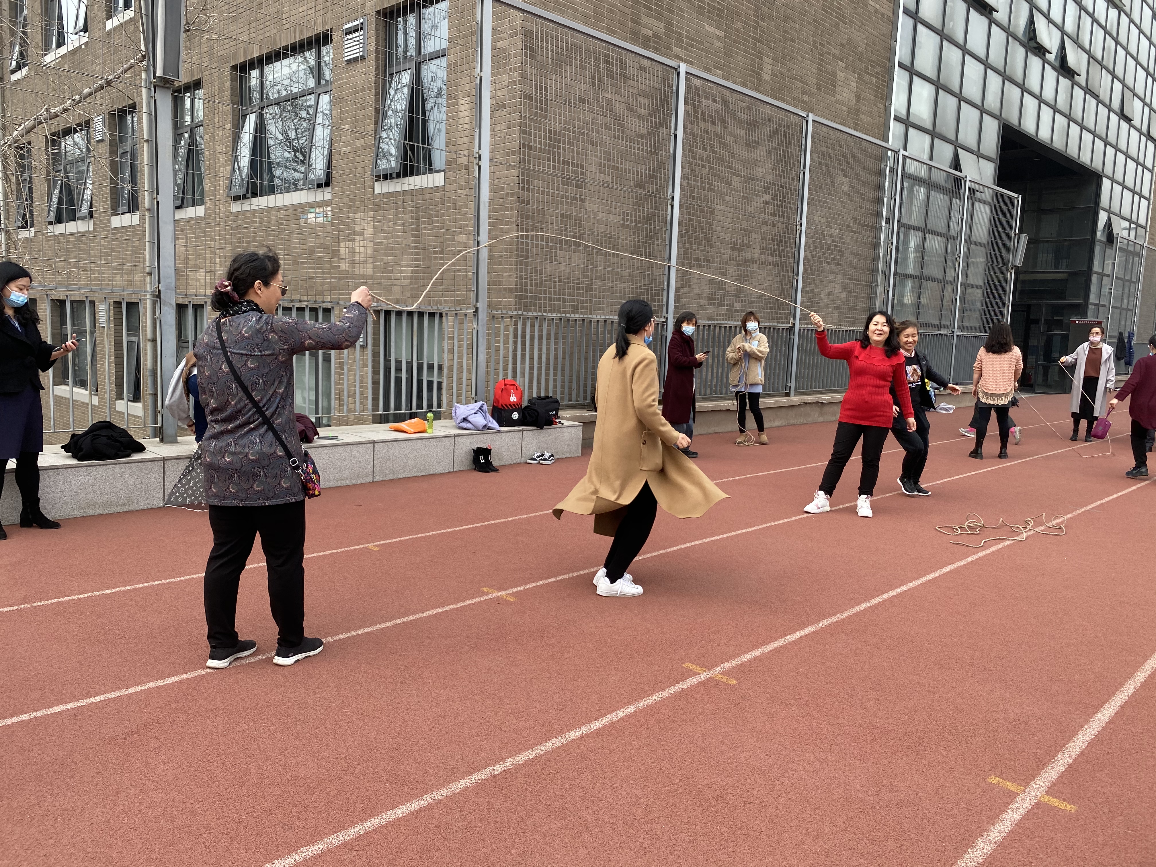其次,说一说附中教职工的体育活动。附中教职工爱好运动,运动场上经常会看到老师们锻炼的身影。工会在妇女节时组织教职工跳绳、踢毽子。这些项目简单易行,大家非常乐意参加。运动场上,学生们看到老师热情四射的跳绳、踢毽子,也都纷纷夸奖老师跳得好。老师们还“组团”参加大学工会组织的集体活动,附中教职工参与人数多,竞争意识强,他们努力展示着最好的精神风貌。