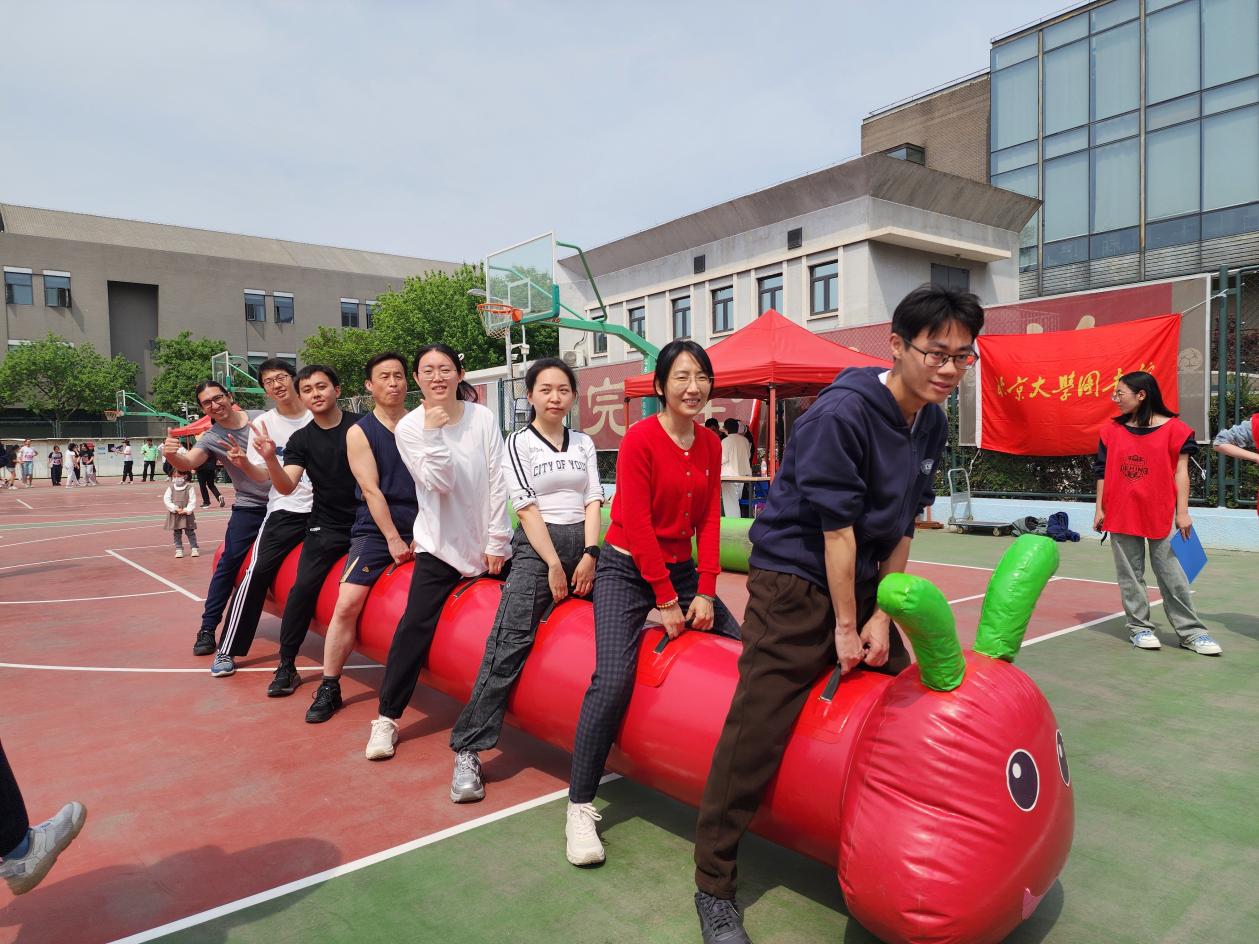 4月26日上午,北京大学五四体育场欢声雷动,一场别开生面的"毛毛虫竞速"比赛在教职工运动会中火热展开。来自各个院系部门的代表队们全部摩拳擦掌,骑乘充气毛毛虫道具,在赛道上展开了一场既考验团队协作又充满趣味的竞技较量。