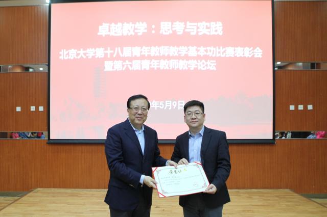5月9日下午,北京大学第十八届青年教师教学基本功比赛颁奖会暨第六届青年教师教学论坛在邱德拔体育馆多功能厅举行。校长郝平出席活动并为获奖青年教师逐一颁奖,校党委副书记、工会主席安钰峰宣读学校表彰决定,副校长、教代会执委会主任王仰麟,校工会常务副主席、教代会执委会副主任张宝岭参与论坛交流。医学部党委副书记、工会主席朱树梅,教师教学发展中心主任孙华,党委教师工作部常务副部长、人事部副部长戴长亮,研究生院副院长姜国华,教务部副部长金顶兵,教务长办公室主任王小玥为优秀组织奖、优秀教案奖、优秀指导教师奖代表颁奖。获奖教师和基层工会代表共80余人参加活动。颁奖会由校工会副主席刘杉杉主持。