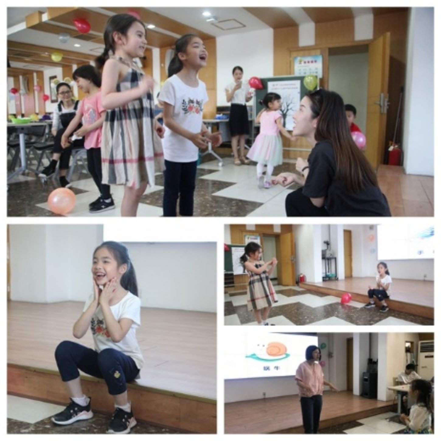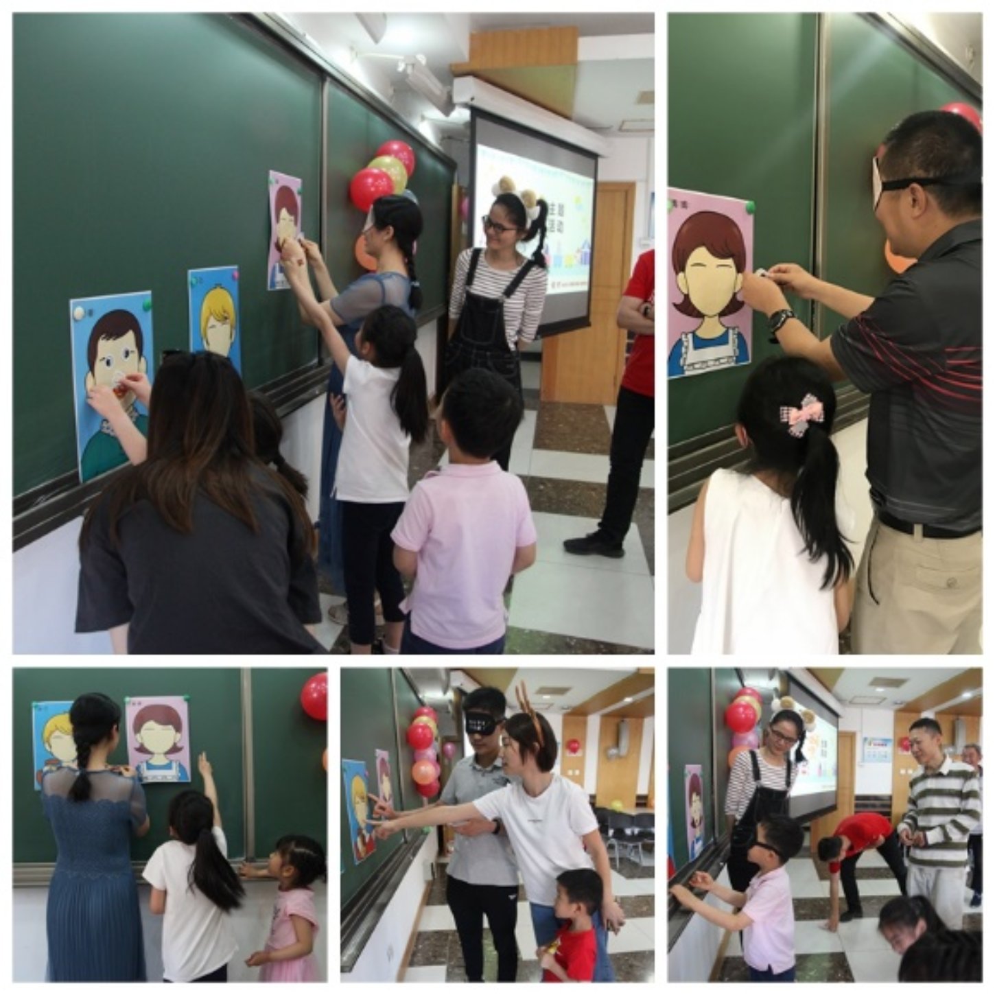 第二项活动“你来比划我来猜游戏”和第三项活动“贴鼻子游戏”同时进行,孩子们以及孩子与家长们的互动有着浓浓的乐趣,既增进了小朋友间的友谊,提升了他们的语言表达和肢体表达能力,又促进了亲子关系的融洽。