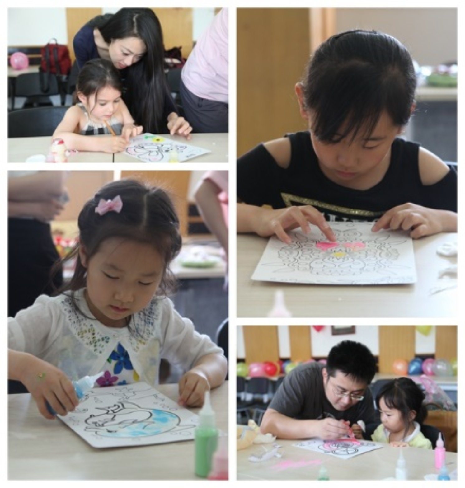 数学学院党委副书记兼行政副院长孙赵君首先向在场的小朋友们致祝福词,紧接着开始了第一项亲子趣味手工活动。小朋友们先挑选自己喜欢的底画,家长在旁指导,让小朋友自己DIY。小朋友们马上进入状态,撒沙、调匀、抹平……一点都不敢马虎。上色时需要很好的耐心,同时必须具备一定的色彩搭配能力和丰富的想象力,才能制作成一幅生动漂亮的沙画作品。经过小朋友们的努力,一幅幅美丽的沙画作品在一双双稚嫩的小手里诞生!温馨的小屋子、五彩缤纷的花园、可爱的小公主、漂亮的小天使…… 画稿中的动漫形象跃然纸上,动感十足,把小朋友们引领进了充满神奇力量的动画世界。在这里,每一个孩子都是天生的“毕加索”,怀揣着纯真的想法,他们天马行空的思维比一张在大人们眼里完美的作品更为珍贵。