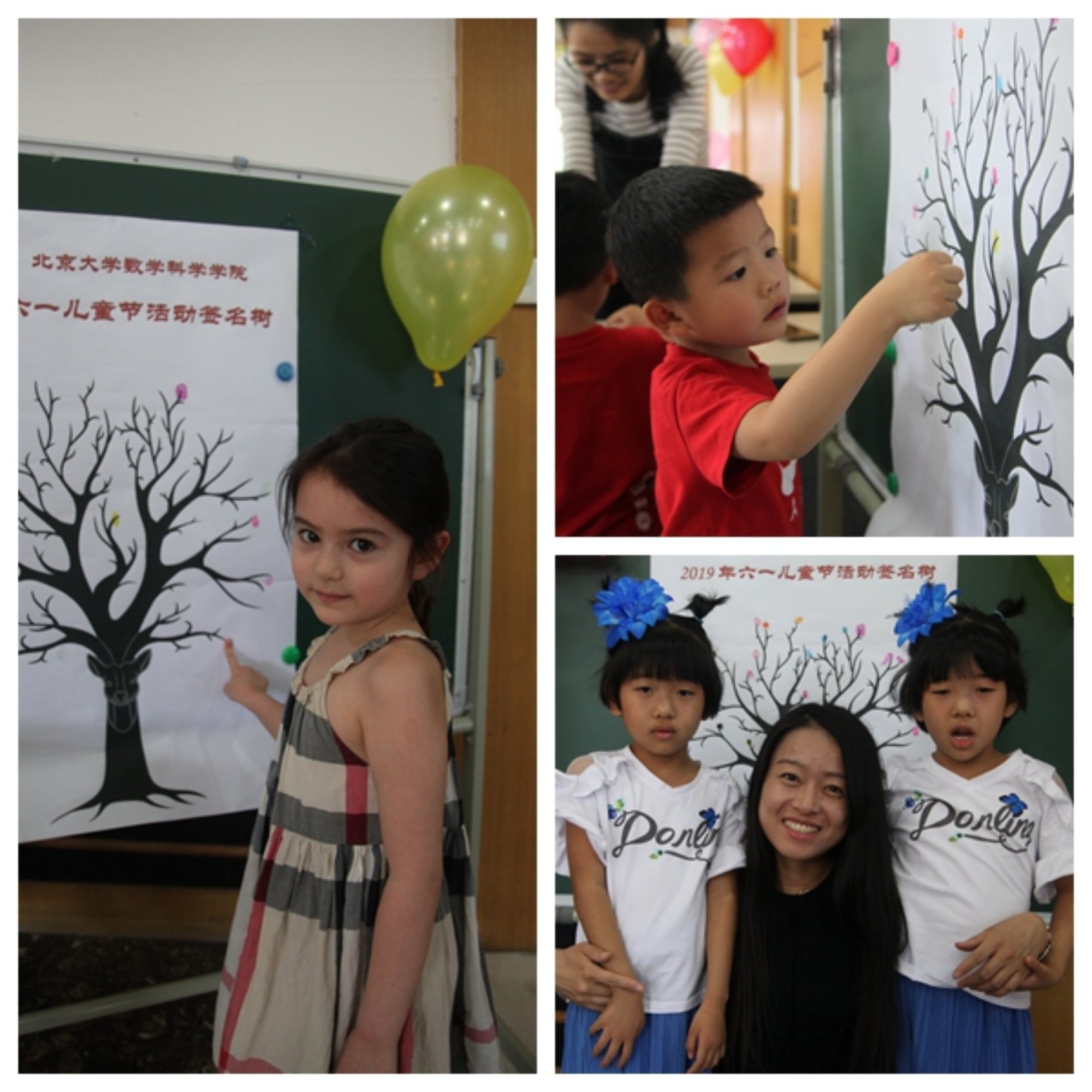 伴随着耳熟能详的儿歌串词,本次活动拉开了帷幕。工会的成员们和志愿者们一起把活动现场布置成了一个制造快乐、充满温馨的小家园,而数学学院和数学中心的宝贝们恰恰是快乐和温暖的源泉。数学学院和数学中心的宝贝们在家人的陪伴下来到了活动现场,入场的宝贝们手抹彩色印泥在绘有树干树枝上印上了自己的手印,就如同撒播阳光,心香墨香把种子抖落,肥沃的土地上,将会生长出一棵棵葱绿的希望。打开一叠记忆,昨天的日子里,绿漪荡开的浅痕很有景致,生命拥有绿色的梦境,梦境点亮渴求的明眸。