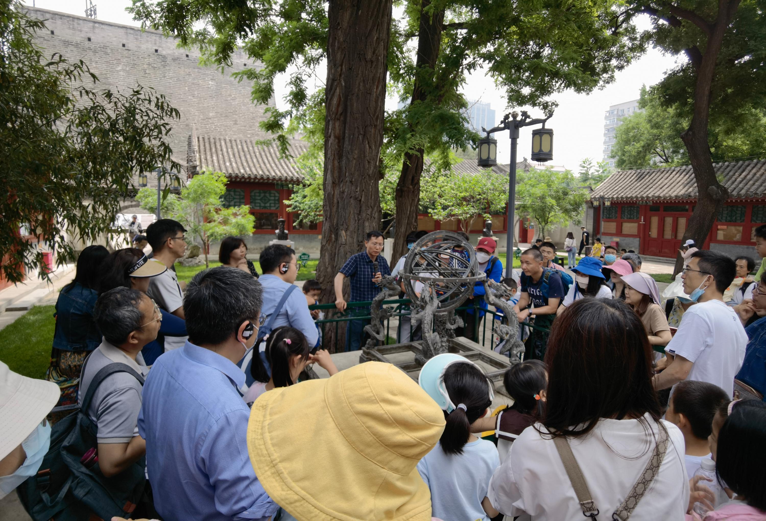 2023年5月28日上午,物理学院工会组织会员和家人前往北京古观象台,举行六一亲子科普参观活动。活动受到学院教职工热烈欢迎,通知发出后短短两天就有近百位会员和家属报名。