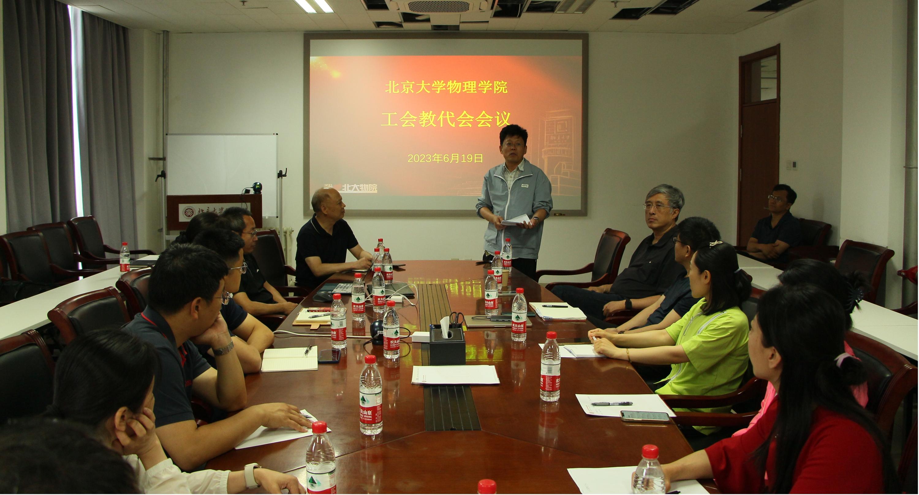 2023年6月19日下午,北京大学物理学院工会与教代会在学院大楼西113室召开会议。学院院长高原宁、党委书记刘雨龙等学院党政领导出席了会议。会议由院党委副书记、工会主席李焱主持。