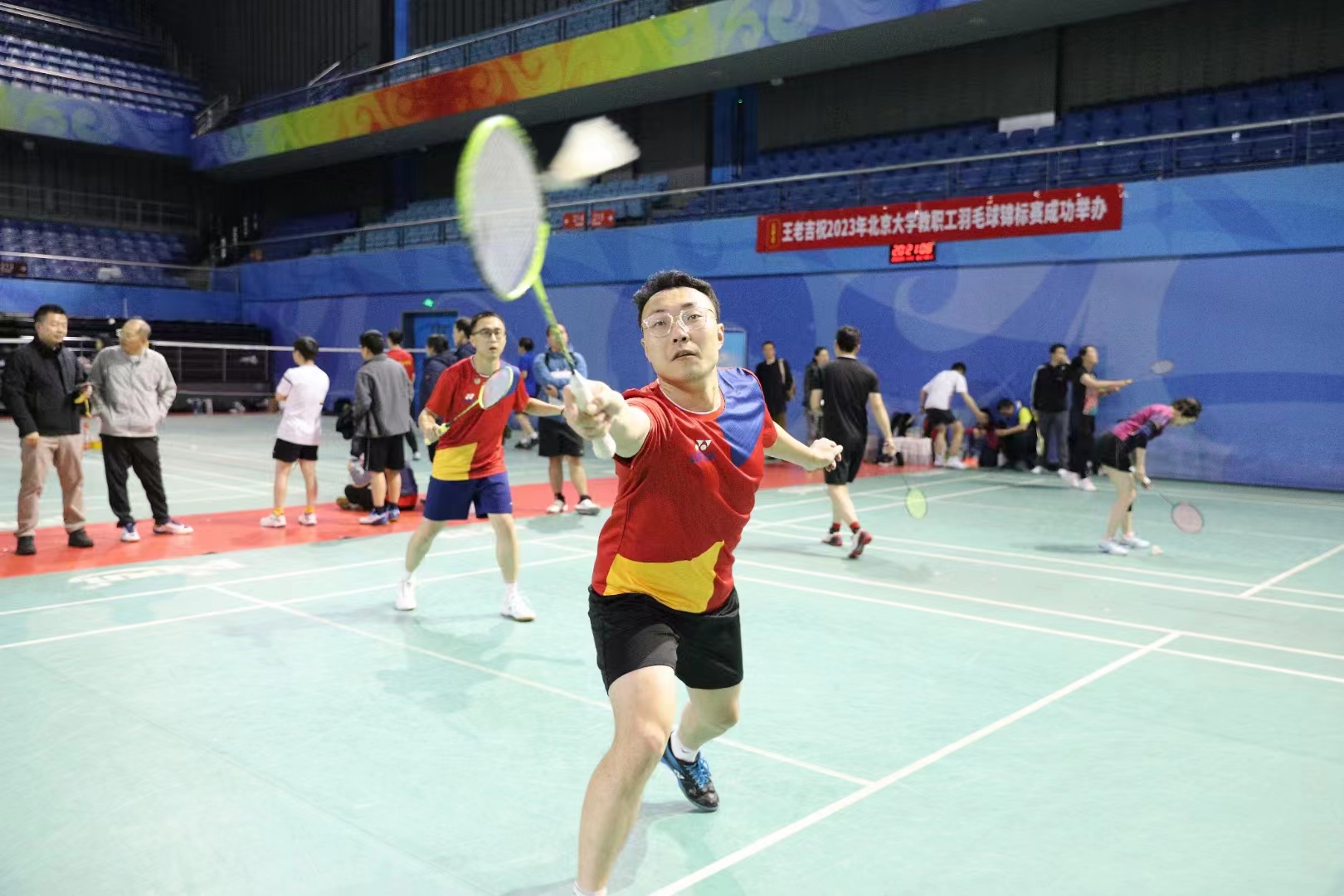 11月6日-9日,“工行杯”2023北京大学教职工羽毛球锦标赛在邱德拔体育馆举行。全校共有70支队伍、645人报名参加此次比赛,其中甲组15支队伍,乙组55支队伍,高手如林。物理学院的物理一队和物理二队参加甲组,物理三队和物理四队分在乙组比赛。经过四天的激烈角逐,物理二队蝉联甲组冠军,卫冕成功,物理一队甲组成功保级,物理三队获得乙组第五名。