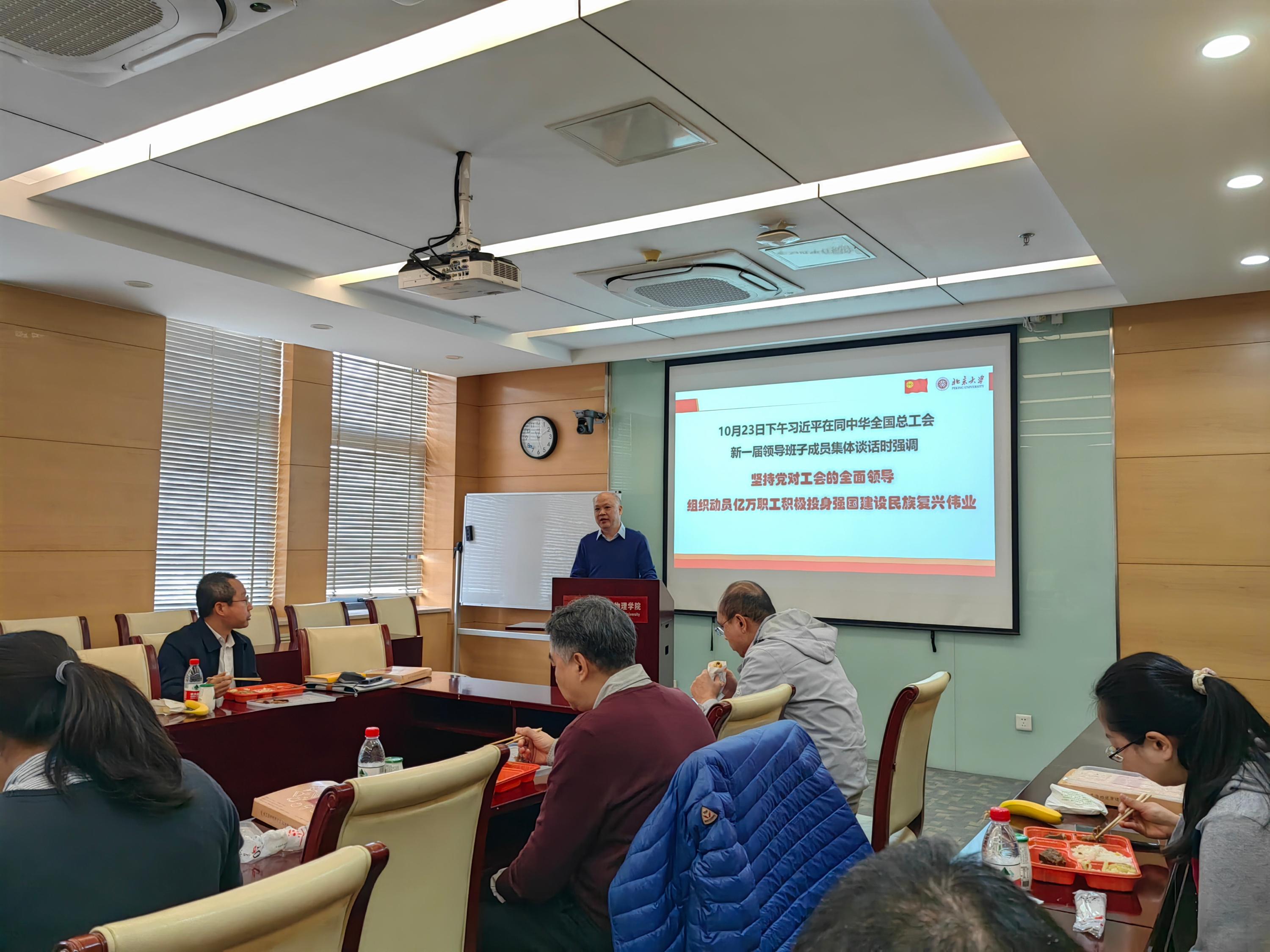 2023年11月13日中午,物理学院组织工会委员、教代会执委会委员集体学习习近平总书记关于工会工作的重要讲话精神,会议由学院党委副书记、工会主席李焱领学。