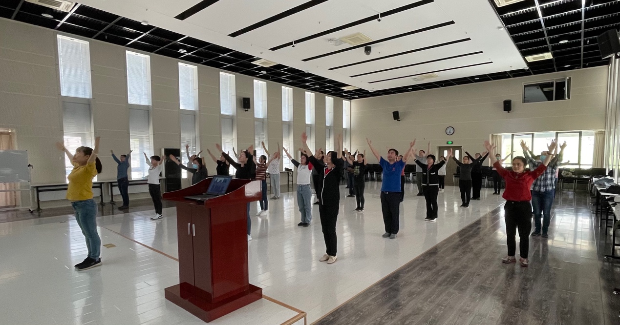 正式表演时,物理学院参演老师被安排在操场正中心的两竖列位置,是全场不折不扣的“C位”。最终,老师们以整齐划一、大方标准的动作完成了全部表演,获得了学校工会的好评,为物理学院赢得了荣誉。
