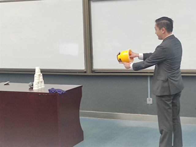 大气与海洋科学系聂绩老师讲解了《流体力学》当中的《涡旋运动 涡束》,荣获二等奖。精彩的现场展示吸引了学生评委们,荣获“最受学生欢迎奖”。