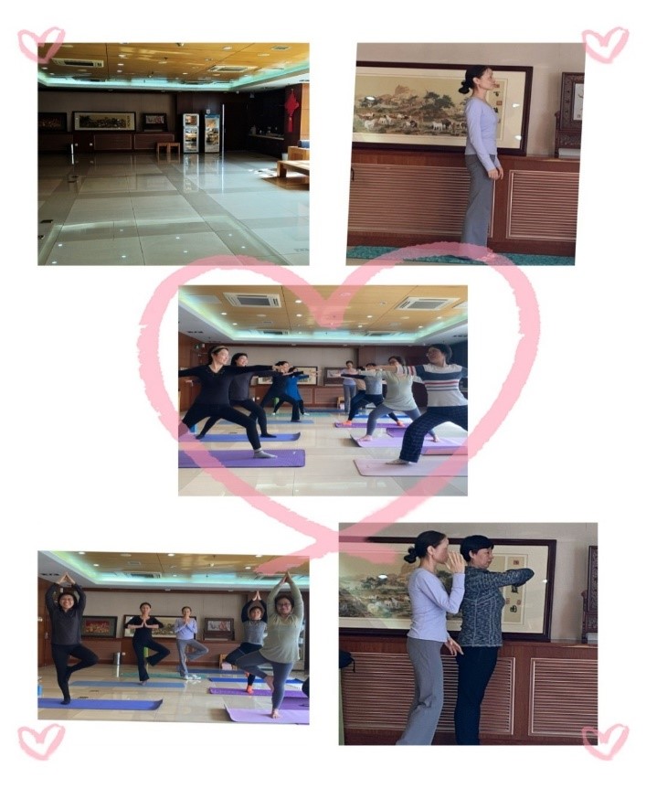 课堂上瑜伽老师通过亲身示范,实时指导,及时纠正动作,指导学员通过配合呼吸节奏,慢慢的伸展身体。通过动与静的结合,以达到陶冶情操、保持活力的目的。这次瑜伽体验获得了老师们的一致好评,这种锻炼形式增加老师们身体的柔韧性和力量,并能感受运动的快乐,减轻心理压力,以更饱满的热情投入到本职工作中。