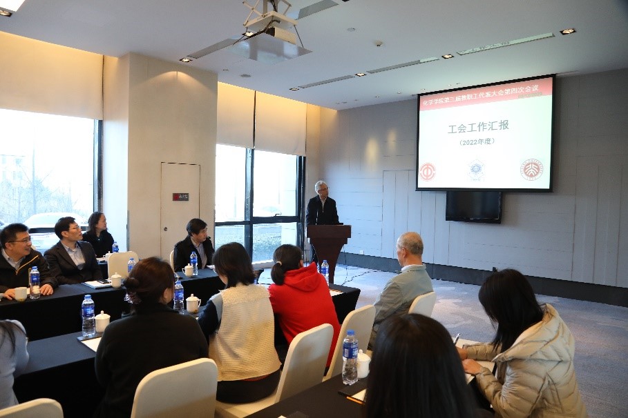 2023年3月12日,北京大学化学与分子工程学院第三届二级教代会第四次全体会议在北京市怀柔区召开。学院党委书记裴坚、党委副书记赵美萍、二级教代会执委会主任委员甘良兵、工会主席杜福胜以及来自各系所的教代会代表等30人出席了会议,会议由甘良兵主持。