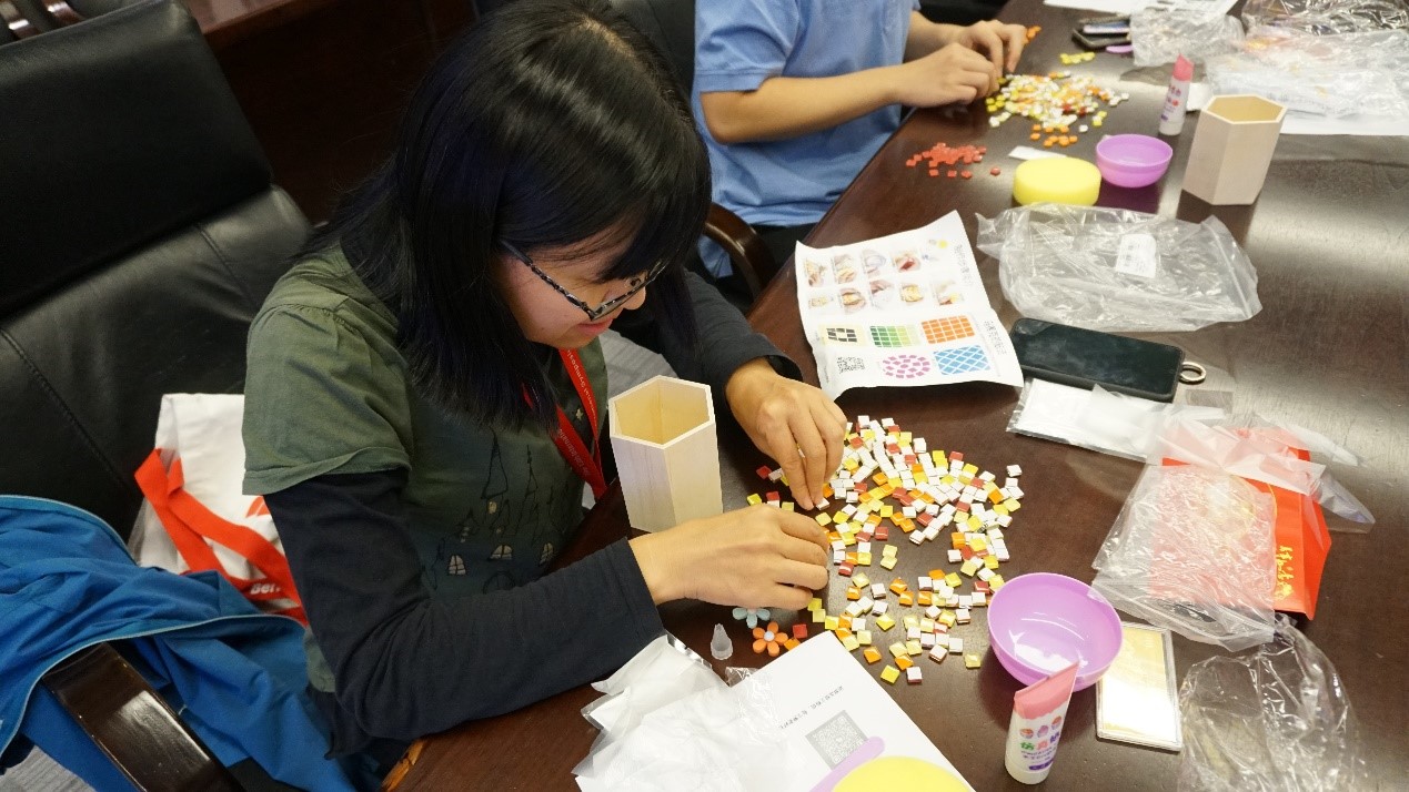 活动的开始,北京大学战略合作伙伴宁波银行的工作人员向老师们介绍了宁波银行的一些特色服务。为共同庆祝中秋节和国庆节的到来,开展此次DIY笔筒活动。之后工作人员将DIY笔筒的材料包发放给各位老师,告诉老师们如何操作后,请在座的各位老师们设计图案,DIY笔筒活动开始。